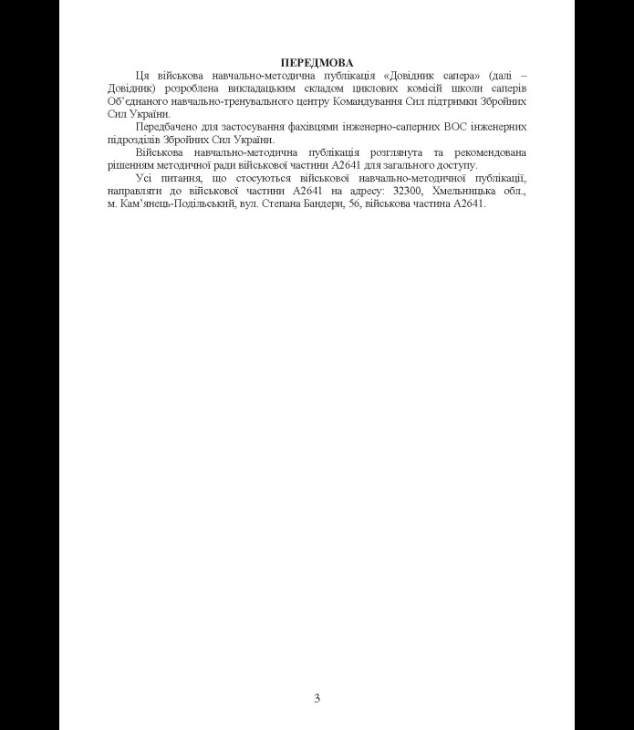 Ця навчально-методична публікація є комплексним практичним посібником для підготовки та повсякденної діяльності військовослужбовців інженерно-саперних підрозділів Збройних Сил України, а також інших сил безпеки й оборони, залучених до очищення місцевості від вибухонебезпечних предметів (ВНП) в умовах бойових дій.
