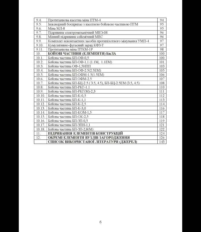 Окремі розділи присвячені бойовим частинам безпілотних літальних апаратів, підриванню елементів конструкцій, вузлам загороджень, підривним зарядам і системам розмінування. Видання містить уніфіковані терміни, скорочення, умовні позначення та посилання на чинні військові публікації.