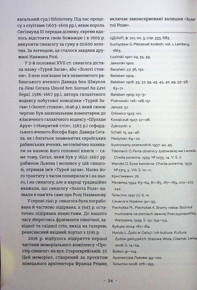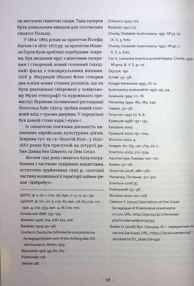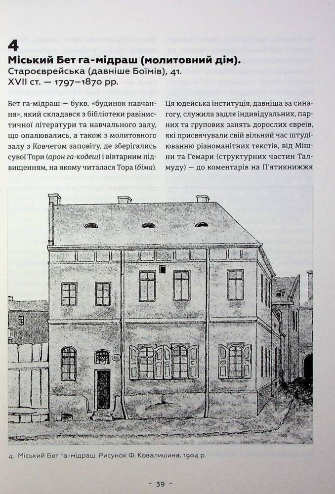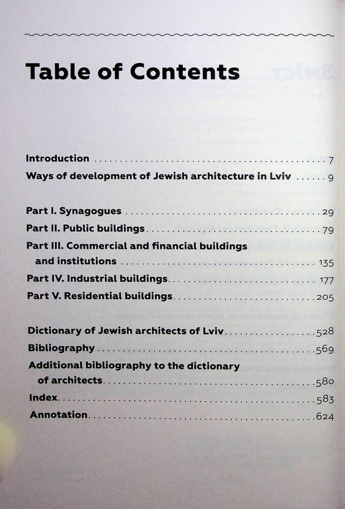 Ця монографія є науковим дослідженням єврейських архітектурних пам’яток Львова від XVI ст. до 1939 р. Вона створена у формі наукового опису й аналізу каталогізованого та систематизованого масиву зафіксованих 440 архітектурних творів. Вибірковість 440 розглянутих об’єктів обґрунтована науковою базою дослідження, в якій використано більшість наявних архівних, літературних і електронних джерел, що є репрезентивною селекцією єврейської архітектурної спадщини. Монографію структуровано за п’ятьма блоками, згідно історичного функціонального призначення споруд, з наскрізною їх нумерацією. До обов’язкових назви, адреси (тогочасної та сучасної), часу побудови, власності, архітектора, історичних стадій будівництва і нинішнього стану залучено стилістично-мистецтвознавчий аналіз, а також свідчення про установи і відомих особистостей, пов’язаних з тією чи іншою спорудою. Наприкінці книги подано біографічний словник львівських єврейських архітекторів та будівничих з докладною бібліографією, іменний покажчик та англомовна анотація.