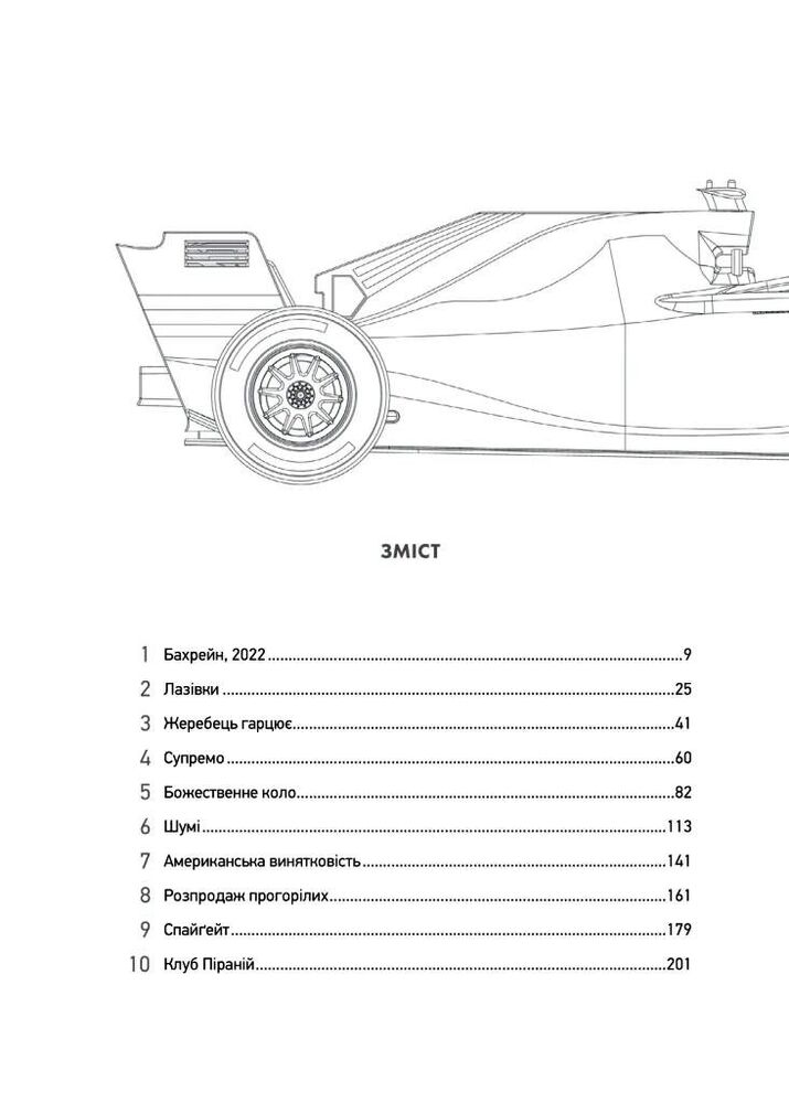 «У цій книзі ви знайдете неймовірні, але реальні історії, що гармонійно підкреслюють та розкривають комплексний світ перегонів “Формула-1“, в якому переплітаються спорт найвищого рівня, новітні технології, велика політика та ще більші гроші»,
