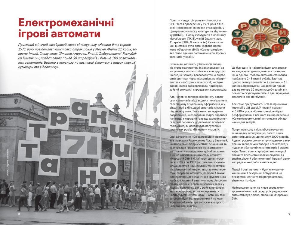 Технічні описи автоматів, особливості їхнього геймплею та дизайну супроводжуються розповідями про повсякденне життя в СРСР. Для кращого розуміння контексту описано роботу підприємства «Союзатракціон», включно з його тіньовою стороною. А наприкінці