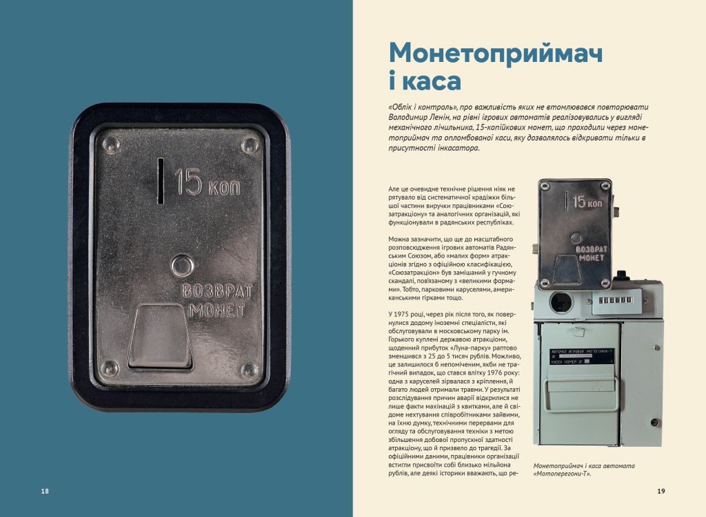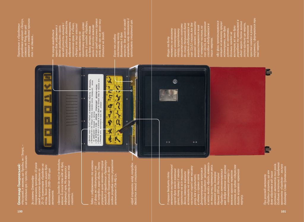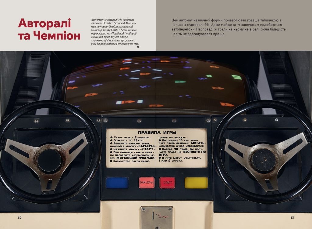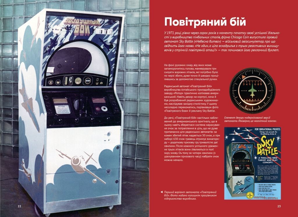 Добре відомо, що більшість радянських ігрових автоматів були скопійовані з іноземних моделей. А з яких саме, в книзі продемонстровано за допомогою сканів рекламних матеріалів Sega, Atari та інших компаній. Проте були й нечисленні власні оригінальні розробки, такі як автомат «Городки» та згаданий «ТІА-МЦ-1» (обидва ці автомати розробили та виробляли у Вінниці), тому їм у книзі приділено особливу увагу.