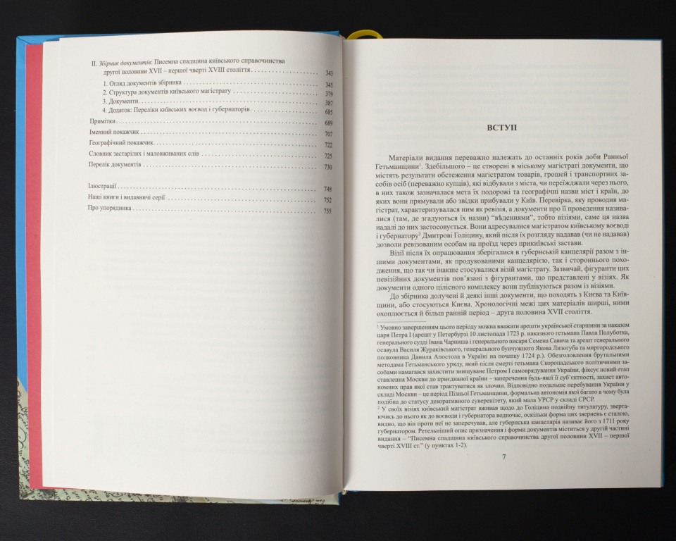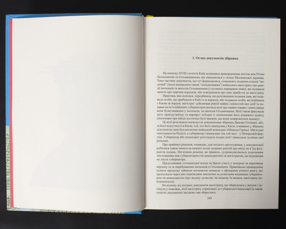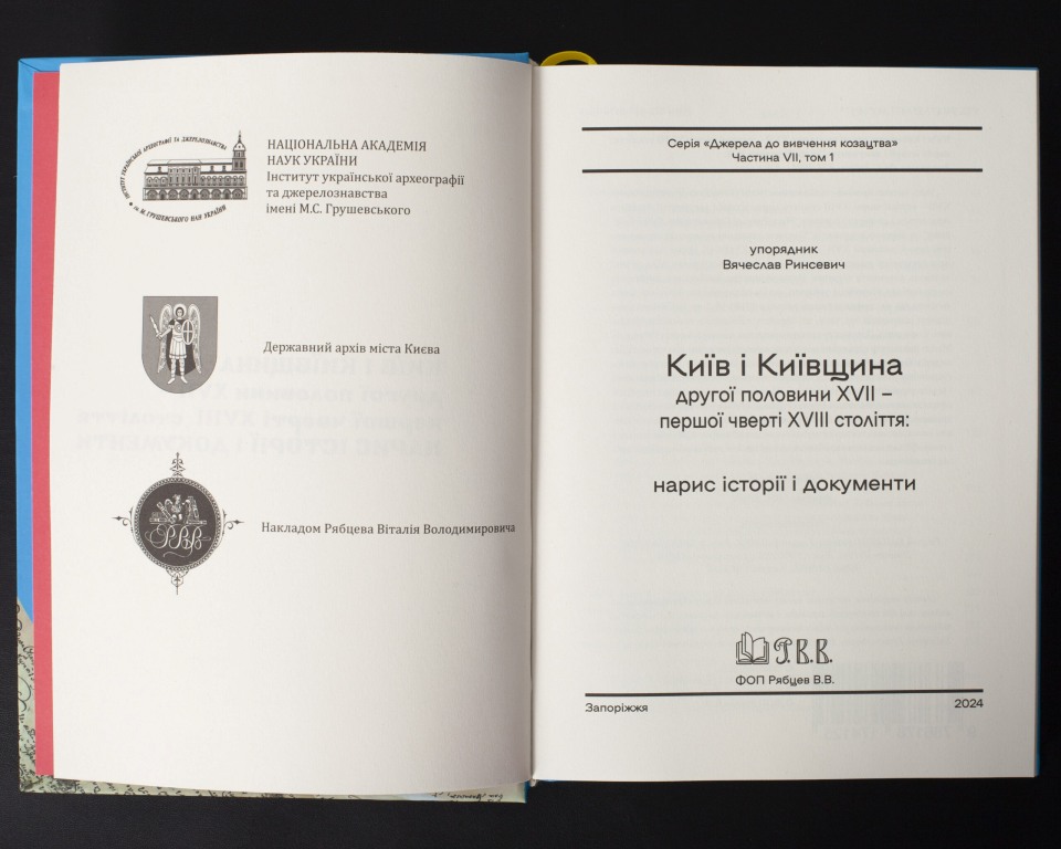 Видання складається з історичного нарису “Часи Ранньої Гетьманщини, Київ і Київщина” та збірника документів “Писемна спадщина київського справочинства другої половини ХVII – першої чверті XVIII ст.”. Нарис покликаний дати детальніше уявлення, що собою представляла історична доба, до якої належать документи збірника.