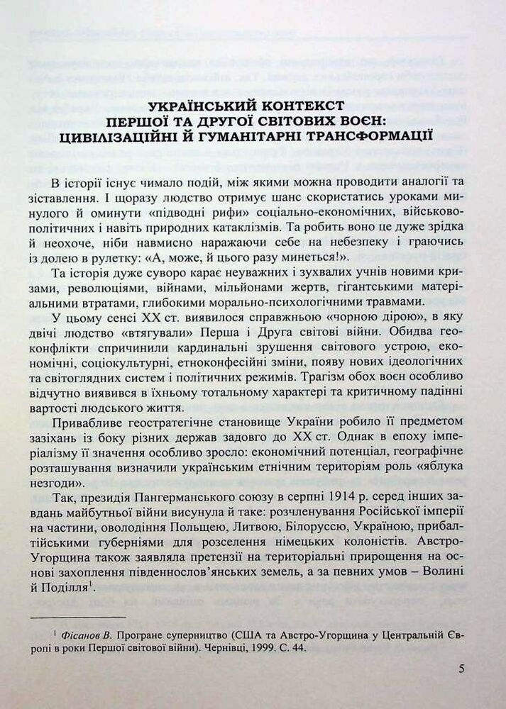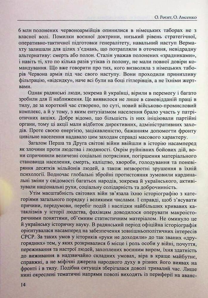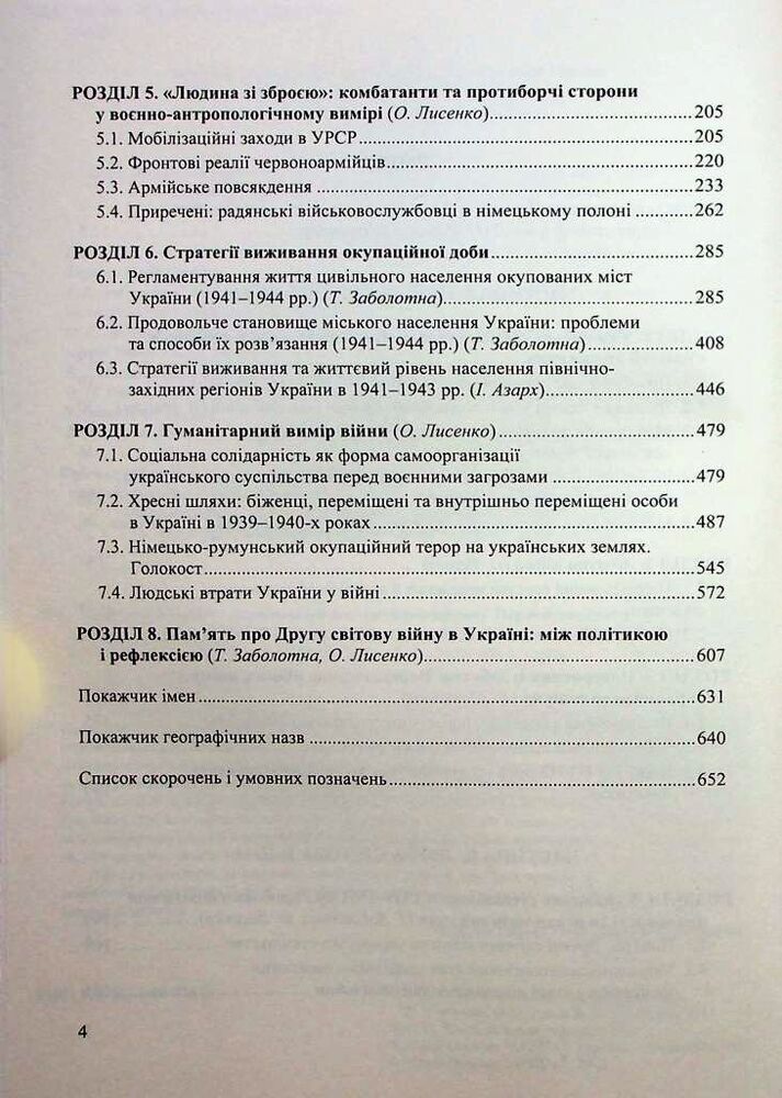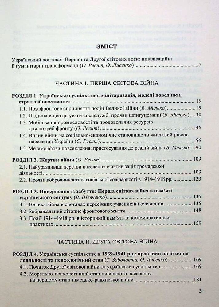 У виданні запропоновано реконструкцію подій Першої та Другої світових воєн у межах дискурсу соціальної антропології. Основну увагу приділено розкриттю низки проблем, пов’язаних із життєвими стратегіями різних категорій та груп українського суспільства, моделями їхньої поведінки та способами виживання в складних умовах війни. З’ясовано визначальні риси глобальних збройних конфліктів, сформовано уявлення про будні пересічних мешканців українських міст і сіл в умовах окупаційних режимів. Проаналізовано соціальні програми й доброчинні заходи, спрямовані на подолання життєвих негараздів уразливих груп населення, визначено роль громадських інституцій і соціальної самоорганізації в цих процесах, висвітлено людські й матеріальні втрати внаслідок війн, шляхи повернення до мирного способу життя, реевакуаційні заходи. Схарактеризовано процес формування пам’яті про Першу та Другу світові війни.