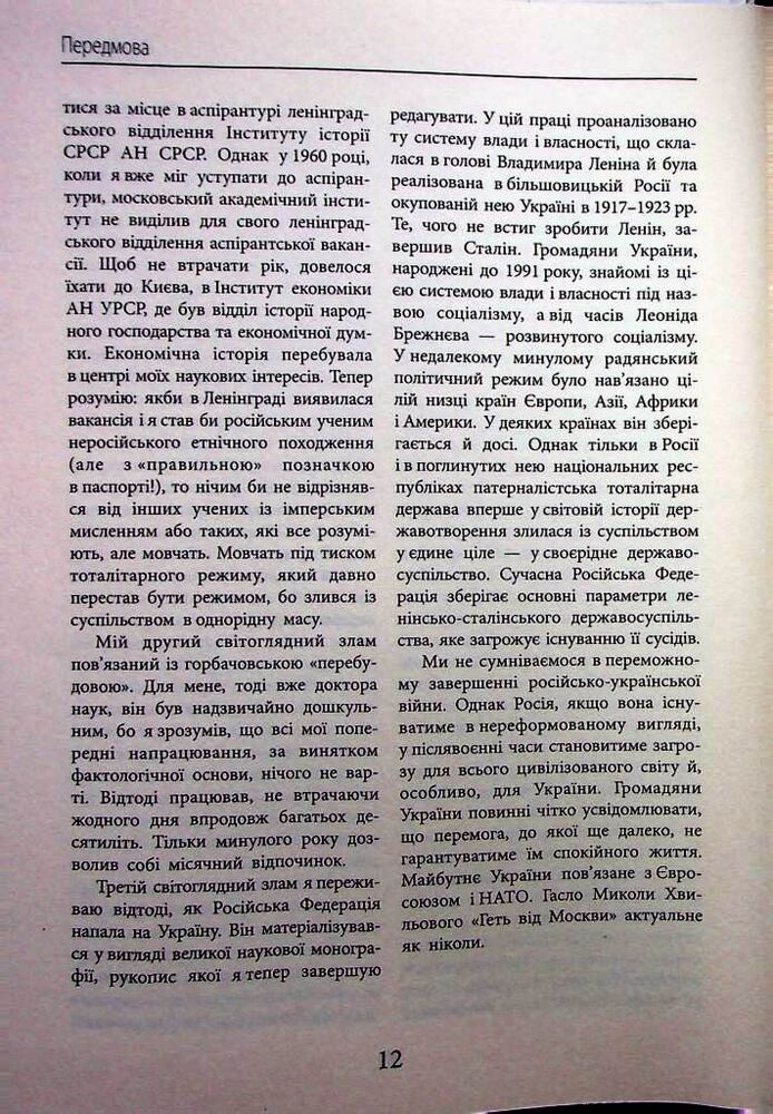 У пропонованому виданні викладено події новітньої української історії впродовж останніх семи десятиліть. Зокрема обґрунтовано провідну роль України в розпаді Радянського Союзу, визначено закономірності перетворення колишньої радянської республіки в олігархічну державу, залежну в усьому від Росії, у якій ленінсько-сталінська система влади і власності неухильно перетворювалася на новий різновид тоталітаризму — рашизм. Проаналізовано складний процес трансформації олігархічної України на демократичну державу. Як свідчать події в незалежній Україні, ця трансформація ґрунтувалася на багатовікових історичних традиціях українського народу, але істотно підсилювалася спочатку прихованим, а потім відкритим, зокрема і воєнним, протистоянням із путінською Росією.