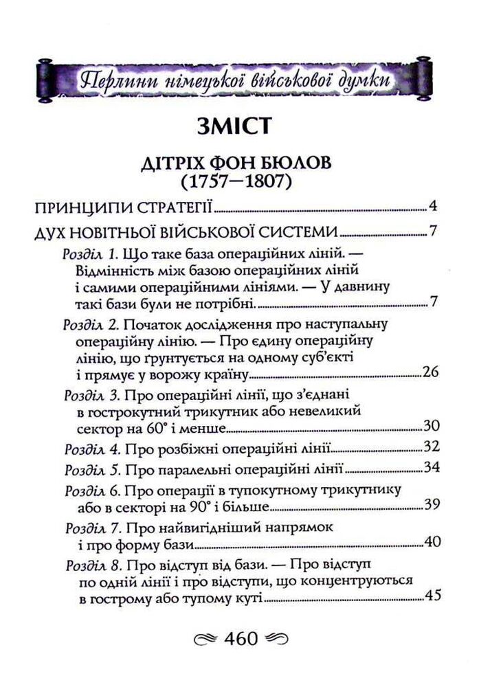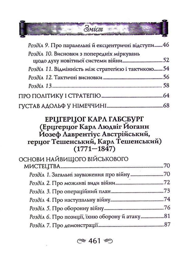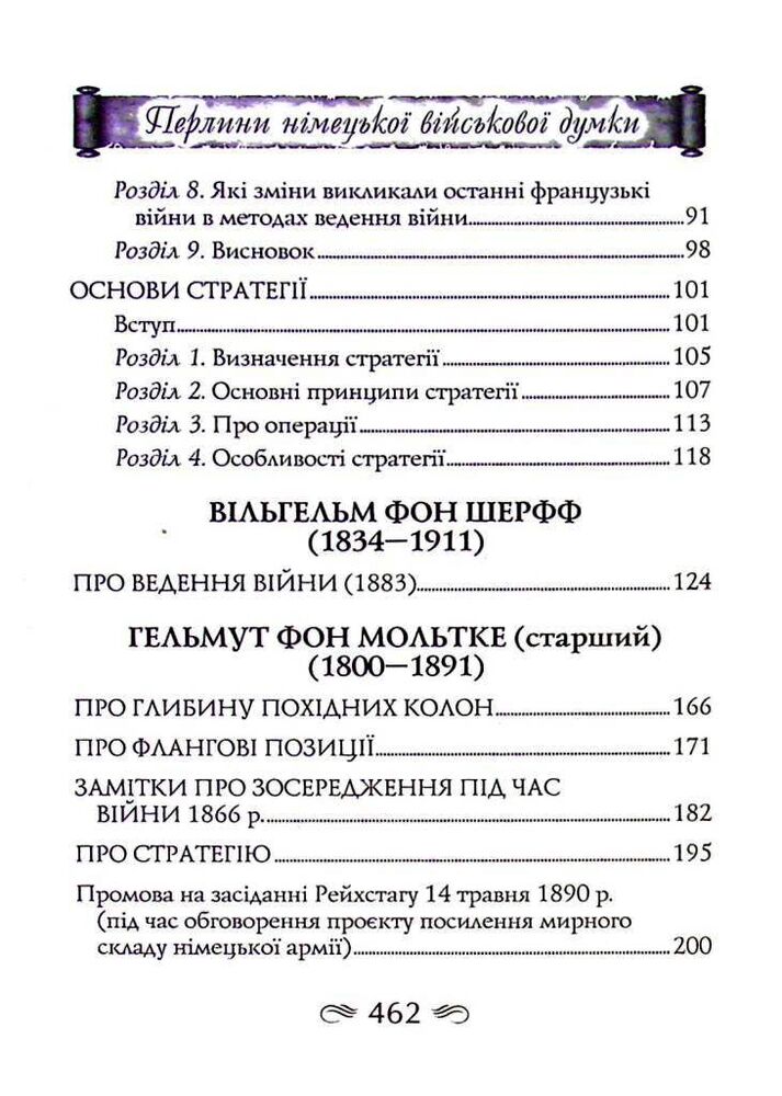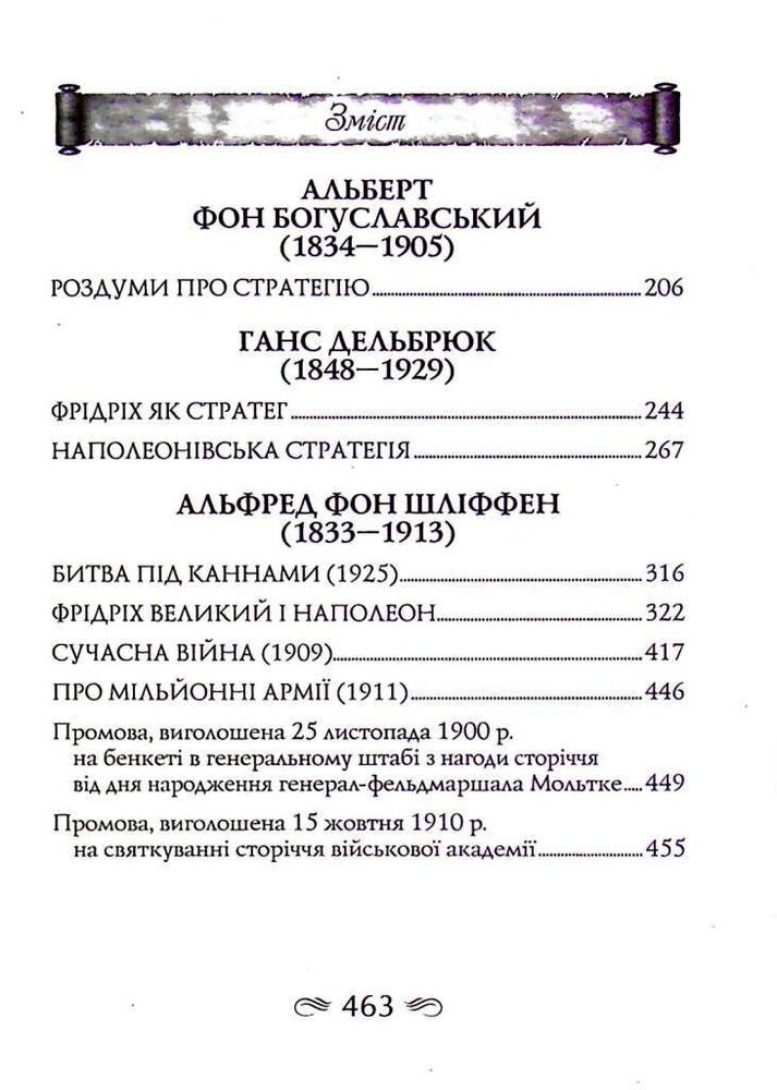 У пропонованій книзі викладено роздуми видатних теоретиків воєнного мистецтва Німеччини й Пруссії ХVІII – першої половини ХХ ст. про війну, її стратегію і тактику — Дітріха фон Бюлова; Карла Людвіга Йоганна Йозефа Лаврентіуса Австрійського, герцога Тешенського; Вільгельма фон Шерффа; Гельмута Карла Бернхарда фон Мольтке (Мольтке-старшого); Альберта Карла Фрідріха Вільгельма фон Богуславського; Ганса Готліба Леопольда Дельбрюка; Альфреда фон Шліффена. Їхні ідеї, як справедливо зауважують дослідники, здійснили справжній переворот у підходах до ведення війни й заклали підґрунтя сучасного воєнного мистецтва. Особливу увагу привертає постать Гельмута Карла Бернхарда фон Мольтке (на обкладинці — на передньому плані), прусського й німецького воєначальника та військового теоретика, який у своїх працях акцентував увагу на нових явищах в організації бойових дій, обґрунтував ефективність системи випереджувального розгортання й зосередження військ, раптових воєнних дій способом оточення супротивника з флангів і блискавичного його розгрому в генеральній битві. З огляду на це цілком справедливими видаються слова про фон Мольтке іншого німецького військового теоретика Альфреда фон Шліффена: «Його успіхи і слава стали можливими завдяки постійній роботі з вивчення минулого і застосуванню набутих знань до сьогодення і майбутнього. Якщо офіцери, які проходять курс Військової академії, наслідуватимуть цю велику людину, то армія ніколи не потерпатиме від браку полководців…».