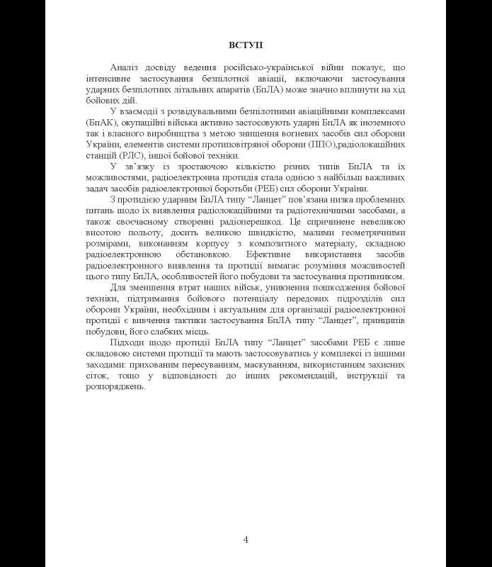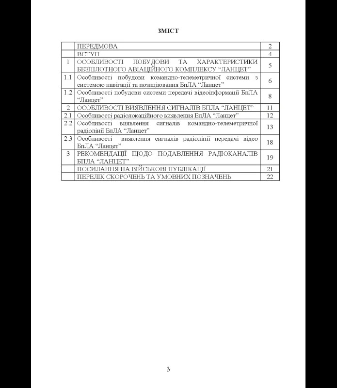 Методичні рекомендації присвячені аналізу конструктивних особливостей, принципів функціонування та вразливих місць безпілотного авіаційного комплексу типу «Ланцет» з метою підвищення ефективності його виявлення та радіоелектронного подавлення.