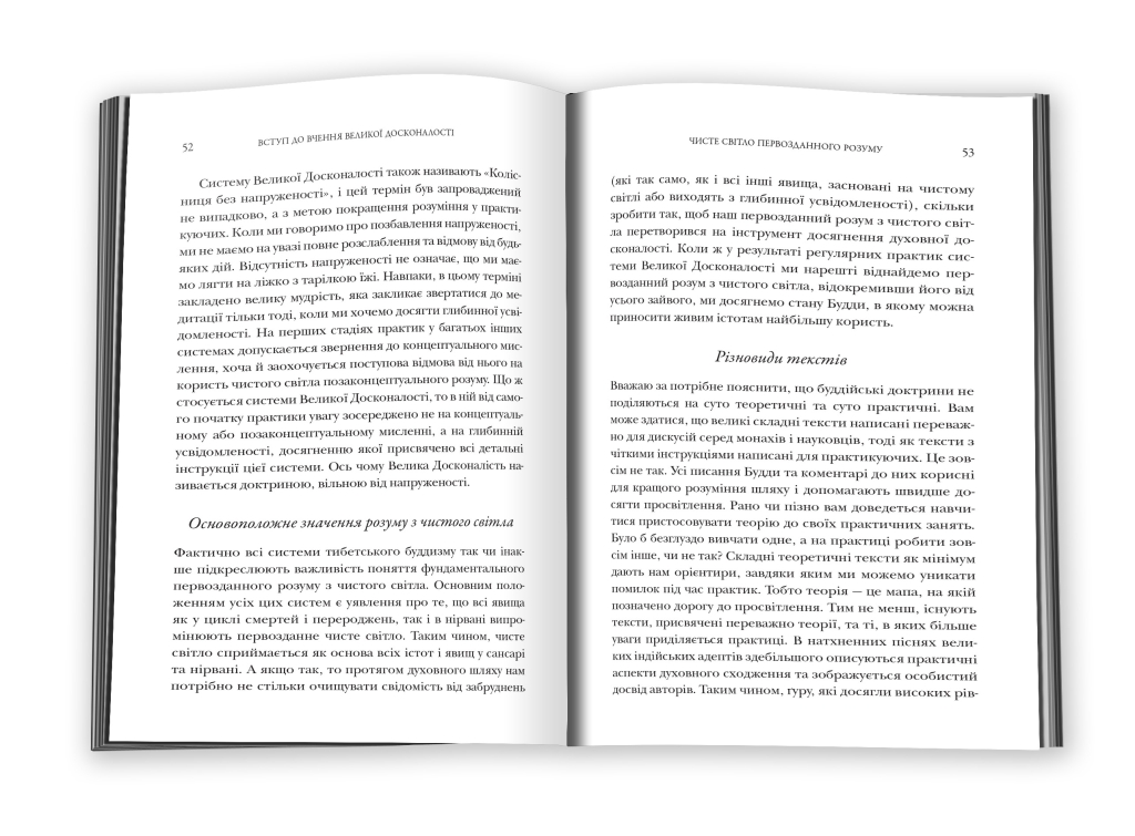 У серці медитації — тобто у самій її сутності — перебуває співчуття, але не звичайне, а таке, що розвивається і розширюється паралельно з мудрістю, неодмінно проявляється під час медитативних практик. Без цього важливого фундаменту всі інші практики виявляються беззмістовними. На щастя, розум можна навчити співчувати, і тоді він, уже підготовлений, перетвориться на благодатне підґрунтя для практики Великої Досконалості (Дзоґчен), яку багато хто вважає верхівкою всіх духовних практик у тибетському буддизмі. Саме завдяки практиці Великої Досконалості ми можемо досягти глибинної усвідомленості та прожити власне життя, транслюючи її у світ і впливаючи таким чином на все, що нас оточує. Мудрість і співчуття, неодмінні супутники глибинної усвідомленості, природним шляхом оселяються в наших серцях і стають основою всіх наших вчинків, що дозволяє прискорити як індивідуальний прогрес у медитації, так і прогрес колективний, щоб зрештою наблизитися до миру в усьому світі.