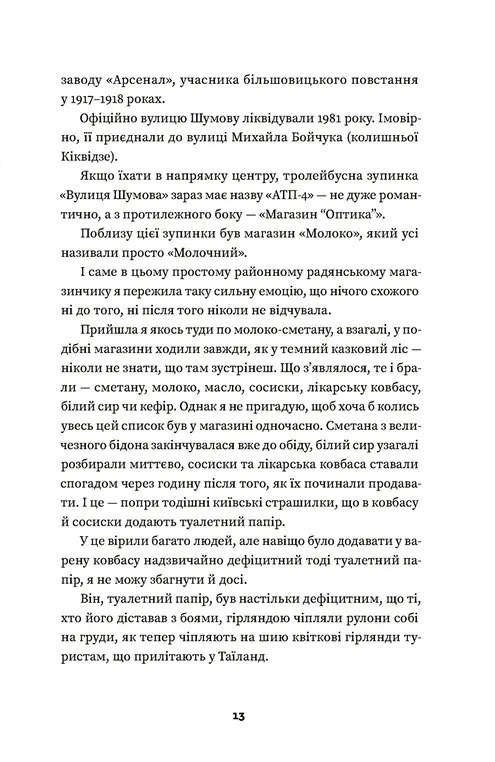 Щодня тролейбус їде вулицями Києва за своїм маршрутом. Кожна зупинка — це окрема розповідь, і йдеться не лише про історію київських вулиць та локацій. Книжка спогадів Наталки Діденко дає можливість зануритися в атмосферу Києва через призму особистих історій авторки. Ці прості й відверті, щемкі, теплі, сповнені доброго гумору розповіді немов переносять нас у минуле, дають можливість пригадати студентські роки й час дорослішання, зустрічі з друзями, маленькі радощі й великі досягнення. З часом змінюються назви вулиць, міняється темпоритм життя, врешті змінюємося ми самі, а тролейбус їде тим самим маршрутом і запрошує нас у мандрівку — в подорож у близьке минуле.