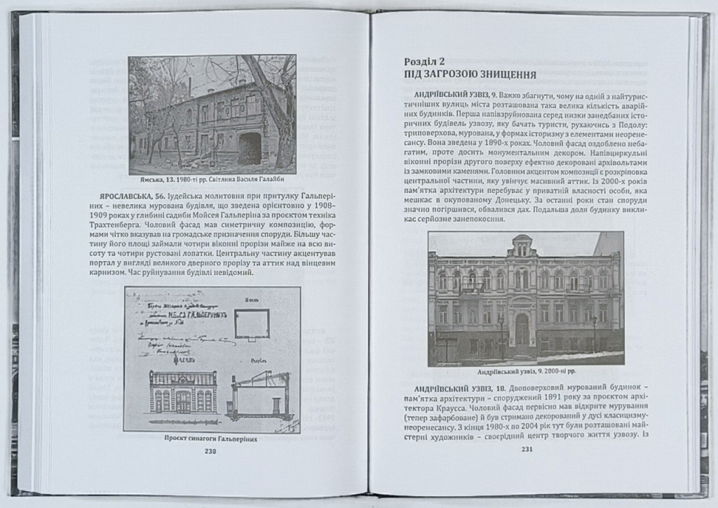 Окремий розділ присвячено 66 спорудам, які сьогодні знаходяться під загрозою втрати через аварійний стан чи наміри знести їх для наступного будівництва. Книжку проілюстровано світлинами, більшість з яких ніколи не публікувалися у друкованих виданнях.