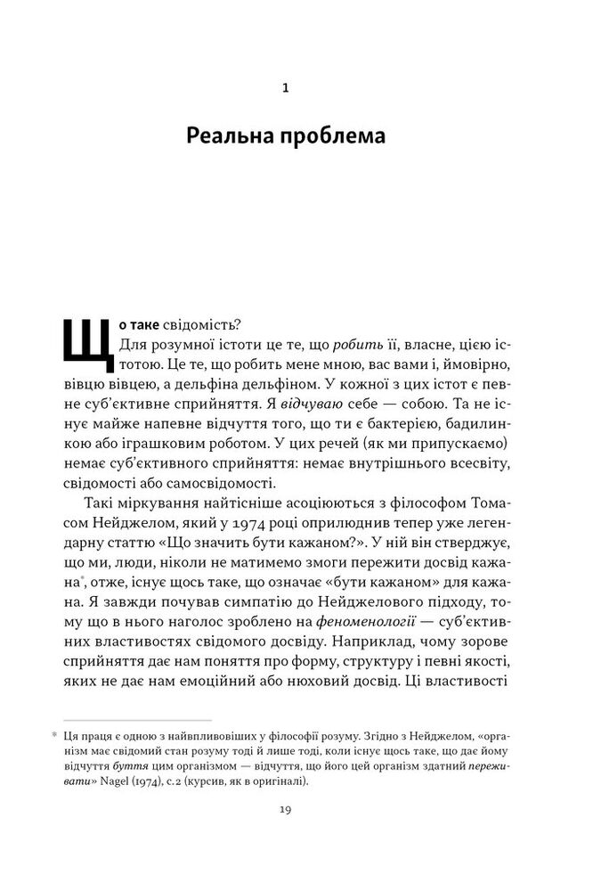 Автор доступно показывает, как тело человека влияет на его сознание, как формируется наш сознательный опыт здесь и сейчас, как тесно связаны самовосприятие и психологический контроль, является ли свобода воли иллюзией, что на самом деле означает «быть собой». Он также уделяет большое внимание вопросу, может ли искусственный интеллект стать сознательным, и если да, чем это грозит человечеству?