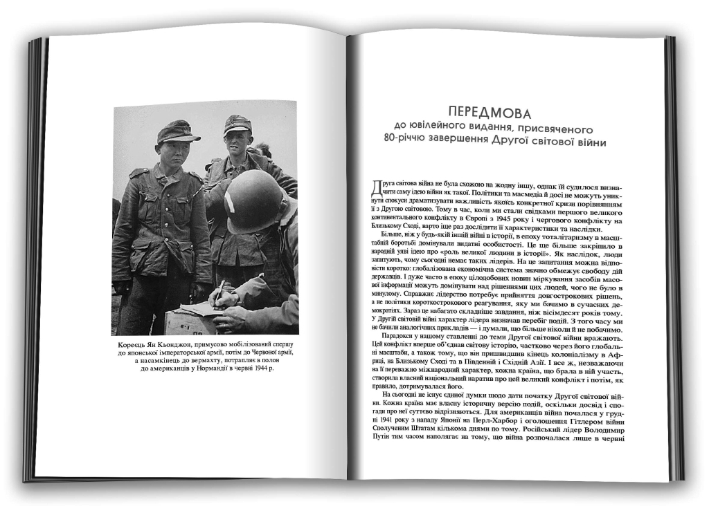 Послуговуючись не лише відомими фактами, а й результатами найостанніших досліджень величезної кількості архівних документів, висновками сучасних авторитетних вчених і фахівців, спогадами людей, причетних до описуваних подій, автор трансформує картину глобального воєнного конфлікту планетарного масштабу у розповідь, що веде нас не лише до Лондона часів Черчілля, імператорського Токіо, а й на узбережжя Нормандії, до Північної Атлантики та південної частини Тихого океану, пояснює, чому і як події, що там розгорталися, так тісно переплелися між собою, який вплив вчинили на історію всього людства, долі мільйонів людей.