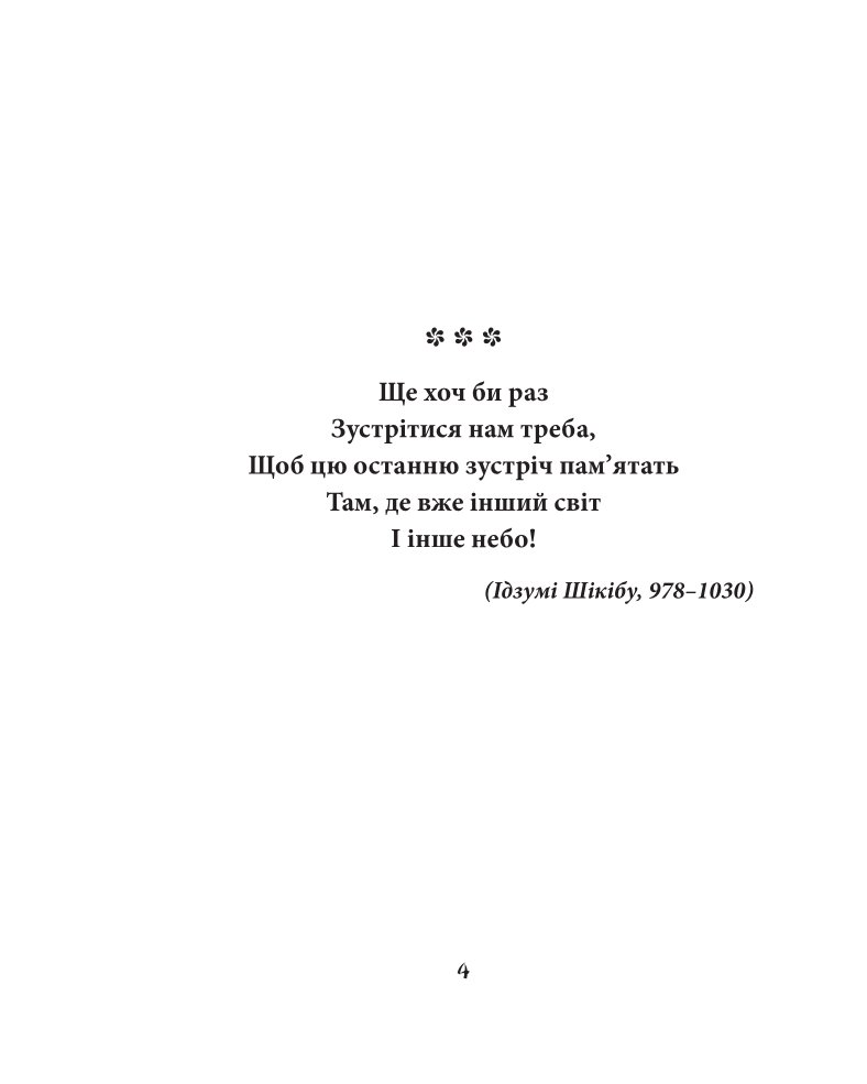 Чотиритомне зібрання містить майже 600 поетичних творів 140 відомих японських поетів і поетів IV-XX ст. Вони ілюстровані гравюрами жанру укійо-е , створеними японськими художниками переважно за доби Едо (1603-1868) і пізніше. Таке поєднання шедеврів японської класичної поезії з кращими зразками національного виду живопису, яким є жанр укійо-е (дослівно: «картини тлінного світу»), має в культурі Японії давнє коріння. Однак в українській культурній традиції трапляється зрідка, що робить це зібрання унікальним явищем сучасного вітчизняного книговидання.