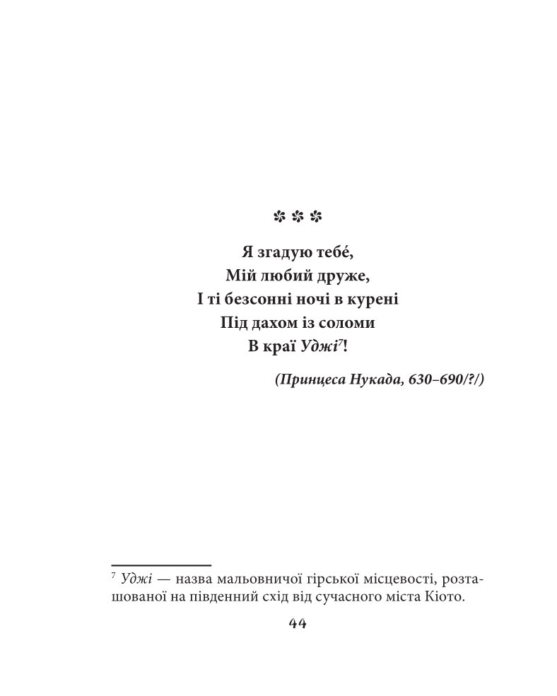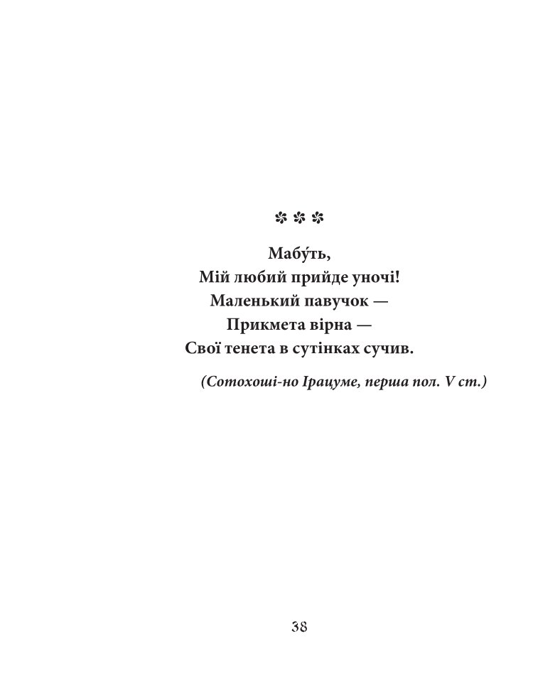 Чотиритомне зібрання містить майже 600 поетичних творів 140 відомих японських поетів і поетів IV-XX ст. Вони ілюстровані гравюрами жанру укійо-е, створеними японськими художниками переважно за доби Едо (1603-1868) і пізніше. Таке поєднання шедеврів японської класичної поезії з кращими зразками національного виду живопису, яким є жанр укійо-е (дослівно: «картини тлінного світу»), має в культурі Японії давнє коріння. Однак в українській культурній традиції трапляється зрідка, що робить це зібрання унікальним явищем сучасного вітчизняного книговидання.