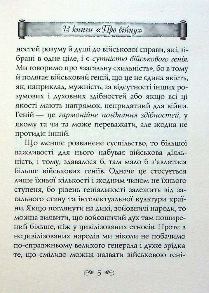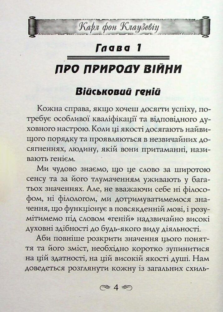 В этой книге автор подробно рассматривает природу войны, отмечая решающую роль военного гения в результате битвы. Четко излагая важность планирования войны, взаимосвязь войны и политики, стратегию и тактику ведения войны, в частности организацию боя, виды и способы наступления и обороны, Клаузевиц определяет и раскрывает базовые принципы ведения войны, что придает его книге характер прекрасного справочного пособия.