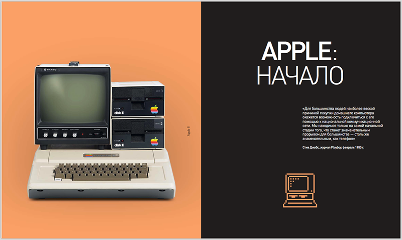 Багато ілюстрований хронологічний довідник з історії комп'ютерів, в якому цікаво і в структурованому вигляді викладена інформація про створення та розвиток техніки Apple на тлі історії персональних комп'ютерів в цілому.