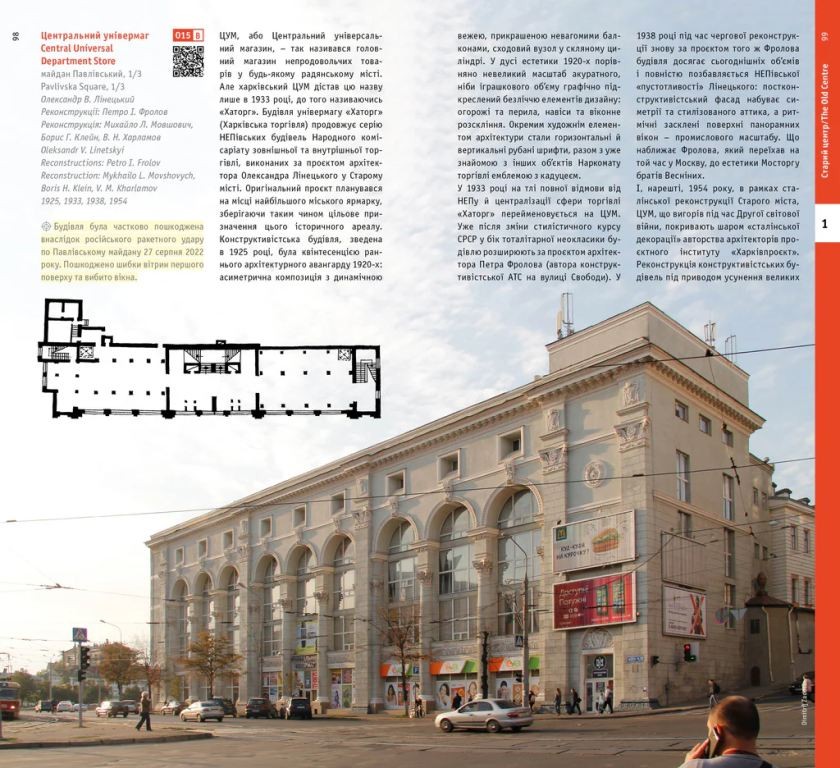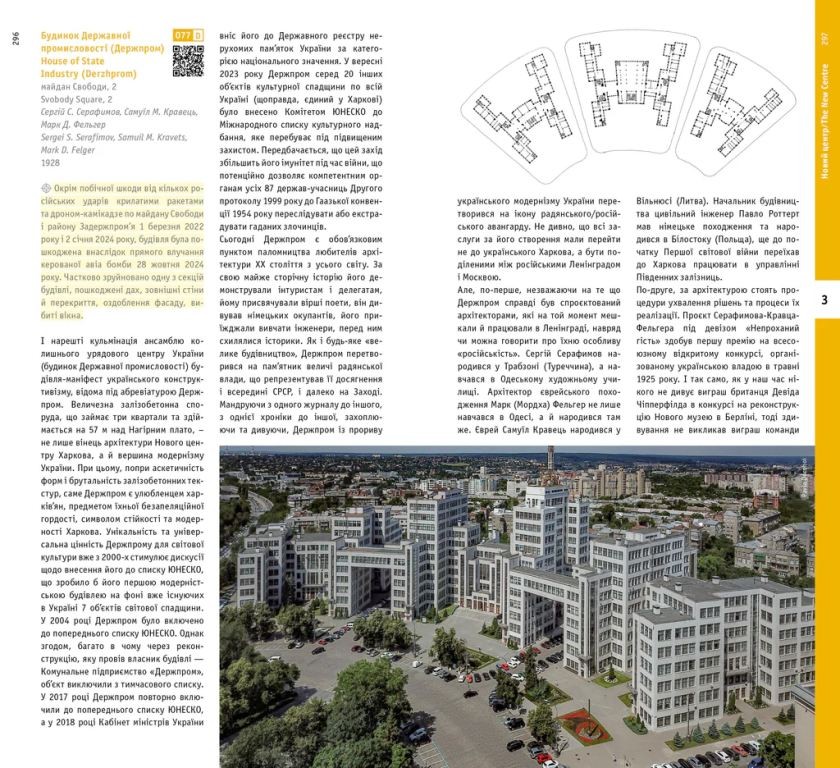 У цій публікації авторка Євгенія Губкіна проводить читача в подорож історією та архітектурою міста, від його Старого центру до Нового, де розташований Держпром, перлина конструктивізму, яка також була втіленням нової моделі соціальних та економічних відносин. Цей архітектурний путівник є даниною незламному духу свободи харків’ян. Але це також важливий акт пам’яті та опору: документуючи будівлі міста словами та фотографіями, навіть коли багато з них день у день руйнуються російськими бомбами, це зберігає їх цілими та живими в нашій свідомості як модель майбутнього міста.