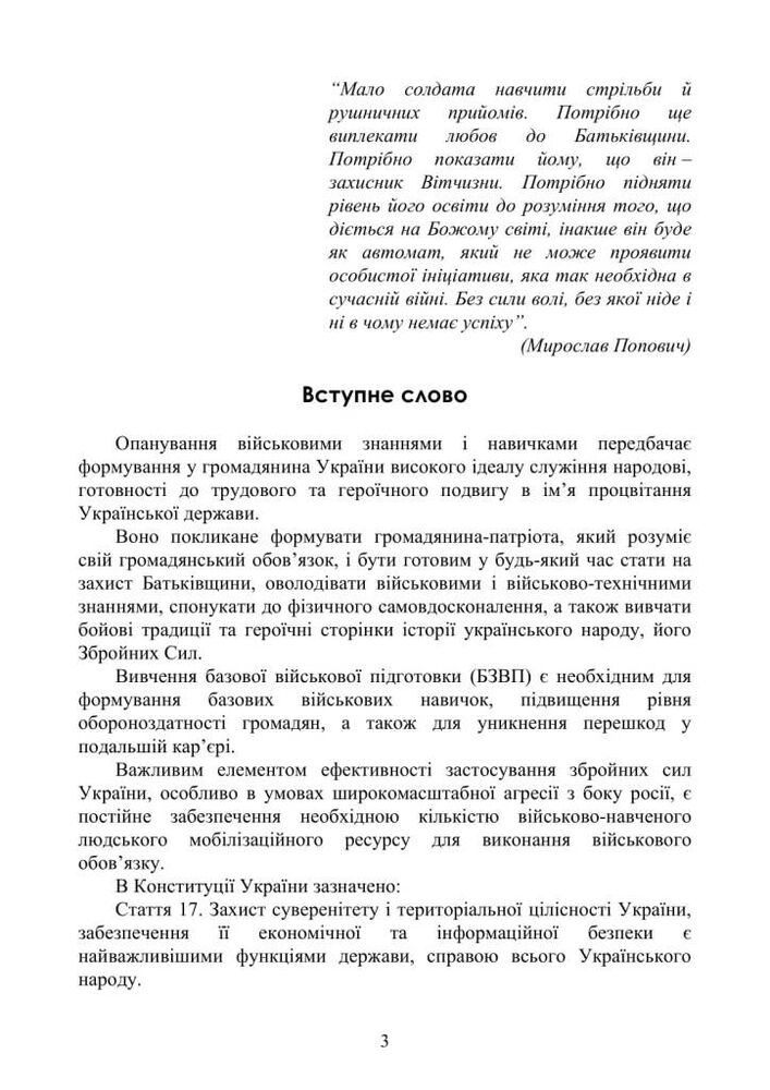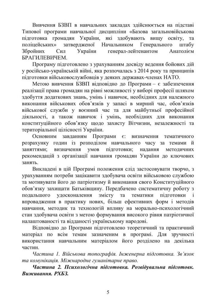 Навчальний посібник «Базова загальновійськова підготовка» містить навчальний матеріал, передбачений Типовою програмою МОН України та Генерального штабу ЗСУ для підготовки студентів вищих навчальних закладів.