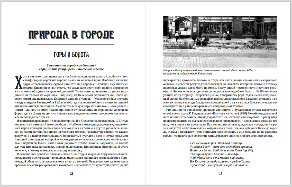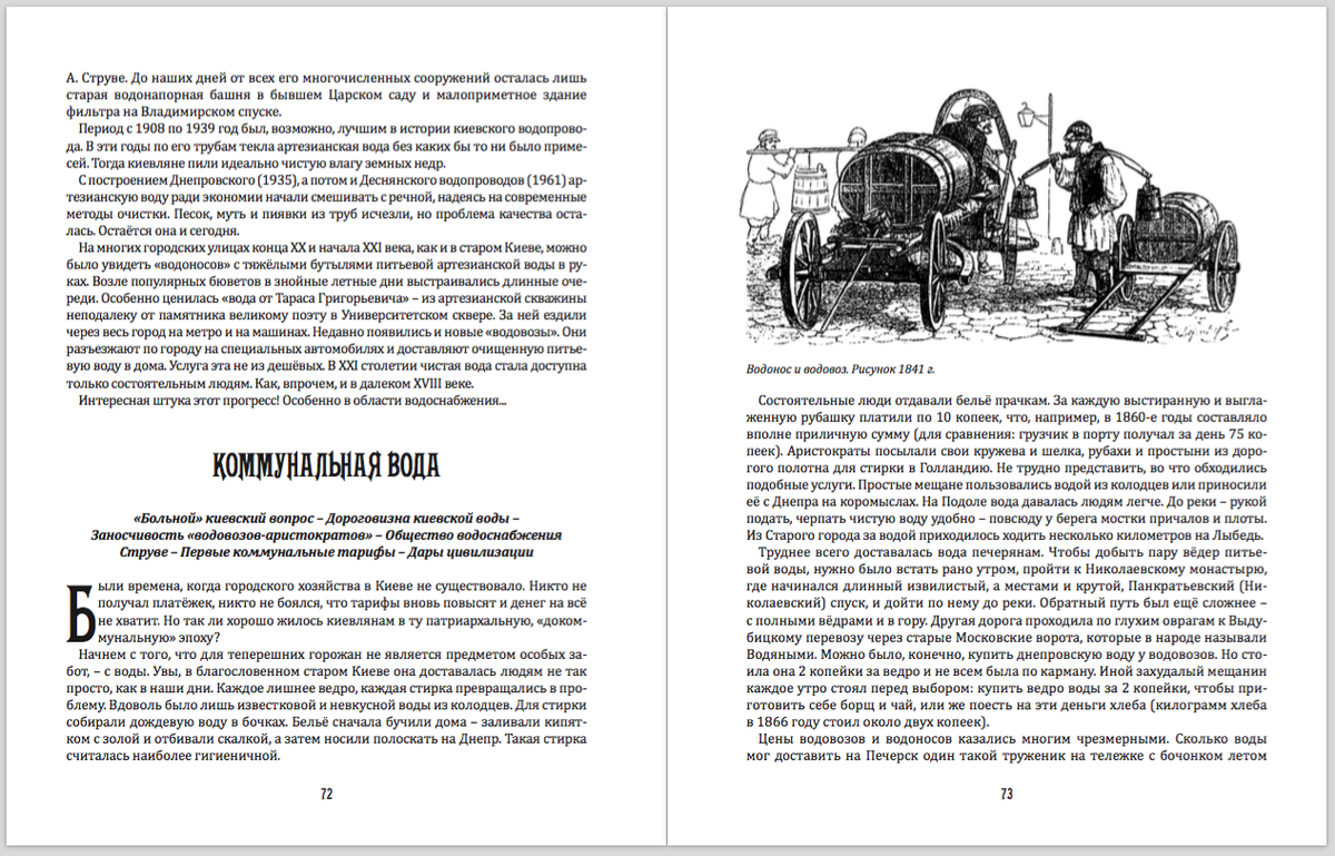 Читатель узнает множество забавных, редких, а порой и шокирующих фактов о повседневной жизни киевских обывателей; о перипетиях внедрения привычных нынче газа, водопровода и холодильников; о том, как преобразило жизнь появление железной дороги, телеграфа и трамвая; а также о непростых отношениях киевлян с животными: лошадьми, бродячими и домашними собаками, певчими птицами и почтовыми голубями.