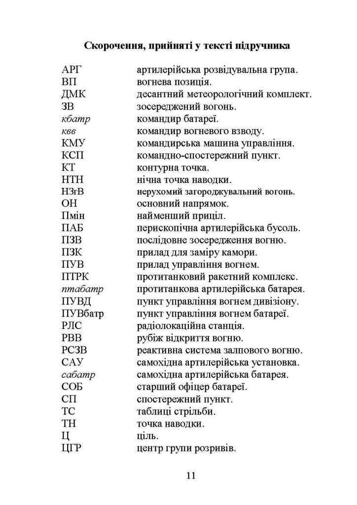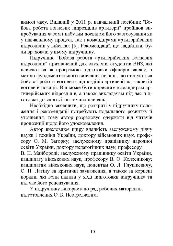 Підручник «Бойова робота артилерійських вогневих підрозділів» відповідає змісту навчальної програми предмета «Бойова робота» для студентів, які навчаються за програмою підготовки офіцерів запасу ланки «взвод-батарея».