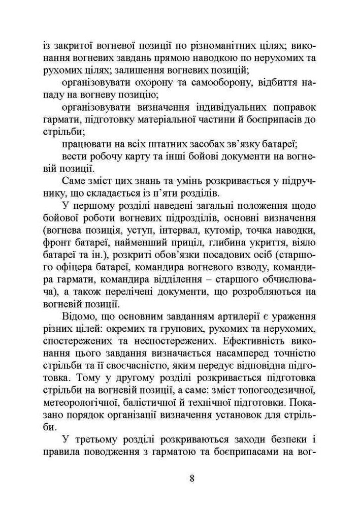 Підручник призначений для підготовки і проведення занять із тактичних і військово-технічних предметів. Він може бути корисним як для викладачів і курсантів (студентів) військових навчальних закладів, так і для командирів артилерійських підрозділів у військах.