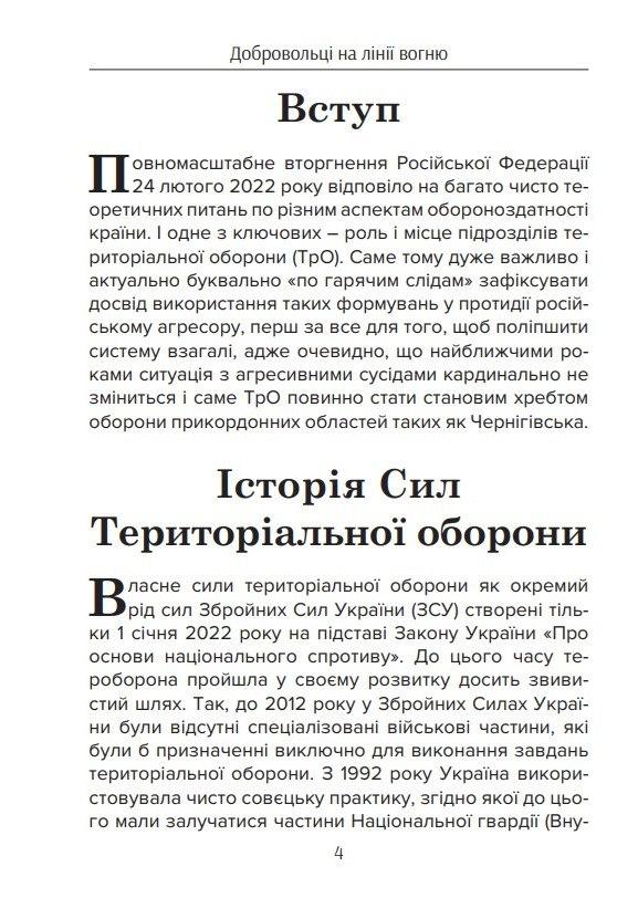 Повномасштабне вторгнення Російської Федерації 24 лютого 2022 року відповіло на багато чисто теоретичних питань по різним аспектам обороноздатності країни. І одне з ключових - роль і місце підрозділів територіальної оборони (ТрО). Саме тому дуже важливо і актуально буквально «по гарячим слідам» зафіксувати досвід використання таких формувань у протидії російському агресору, перш за все для того, щоб поліпшити систему взагалі, адже очевидно, що найближчими роками ситуація з агресивними сусідами кардинально не зміниться і саме ТрО повинно стати становим хребтом оборони прикордонних областей таких як Чернігівська.