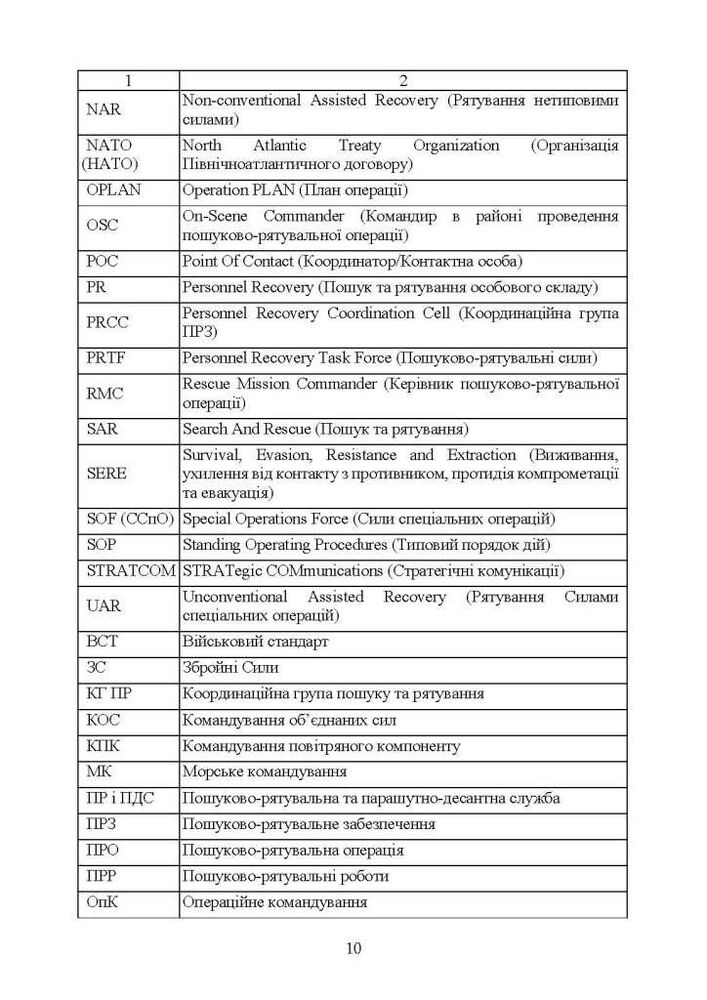 Пошук та рятування — комплекс спланованих, узгоджених та скоординованих заходів з використанням підготовлених пошуково-рятувальних сил та засобів Збройних Сил України та інших складових сил оборони, спрямованих на виявлення (визначення місцезнаходження, ідентифікації), надання своєчасної допомоги (рятування), повернення (евакуації) особового складу (ізольованого особового складу), який зазнав лиха на своїй території або на території противника (на суші або на морі).