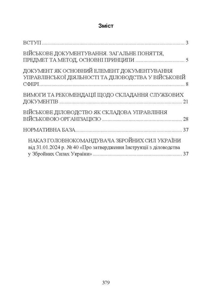 Пропоноване видання пропонує надання загальних понять, визначення особливостей військових документів, встановлення цілей військового документування та діловодства.