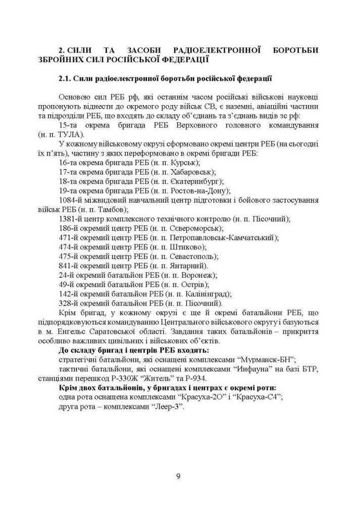 У цьому довіднику розглянуто основні положення радіоелектронної боротьби, сили та засоби РЕБ Збройних Сил російської федерації, а також наведено основні тактико-технічні дані комплексів РЕБ ЗС рф та способи протидії їм.