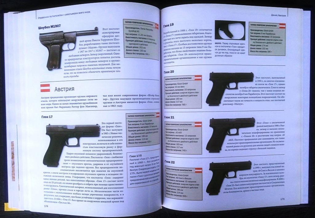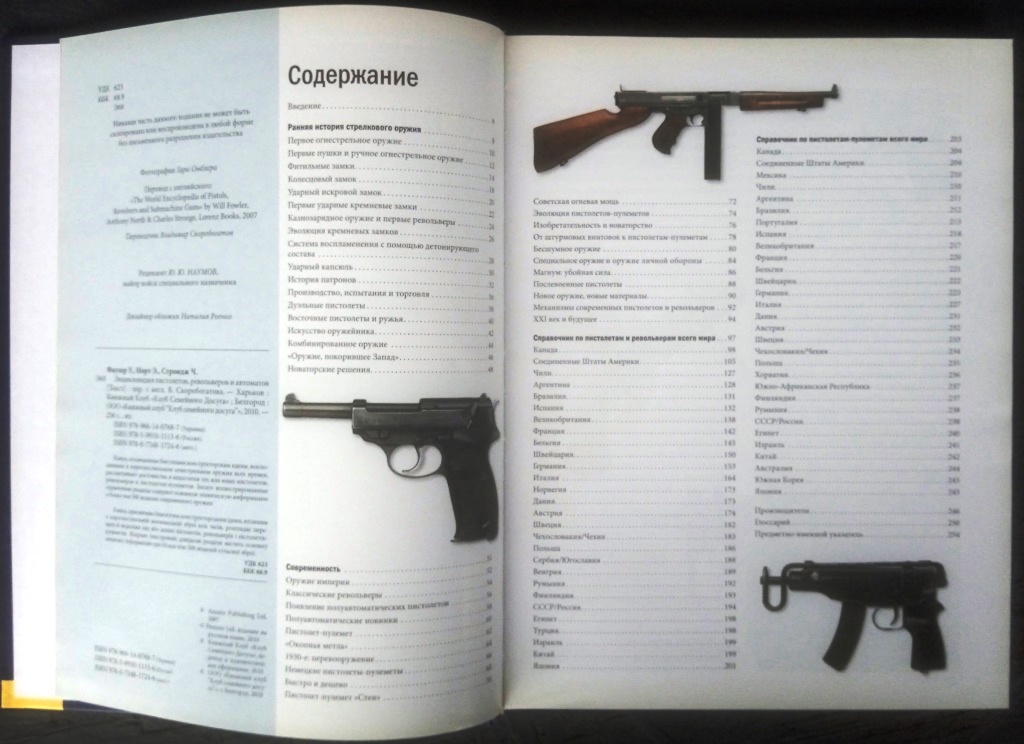 В енциклопедії представлено багатовікову історію вогнепальної зброї - від винаходу пороху до сучасних зразків пістолетів, револьверів, автоматів. Путівник за більш ніж 500 зразками бойової, поліцейської та старовинної вогнепальної зброї. Характерні особливості зразків, розглянуті у військовому, політичному та технологічному контексті обставин їхньої розробки. Тактико-технічні характеристики, включаючи тип патрона, місткість магазину, довжину ствола, масу незарядженої зброї. Ілюстрації, що показують у розрізі деталі внутрішнього пристрою та їхню взаємодію. Докладний перелік виробників зброї. Для всіх, хто цікавиться історією стрілецької зброї.