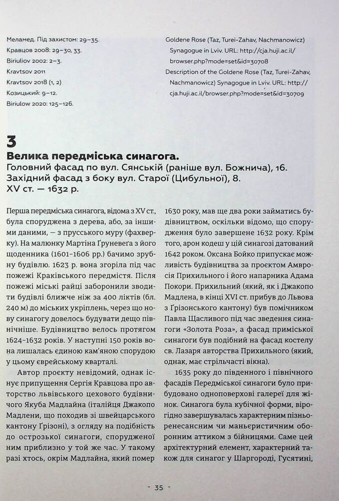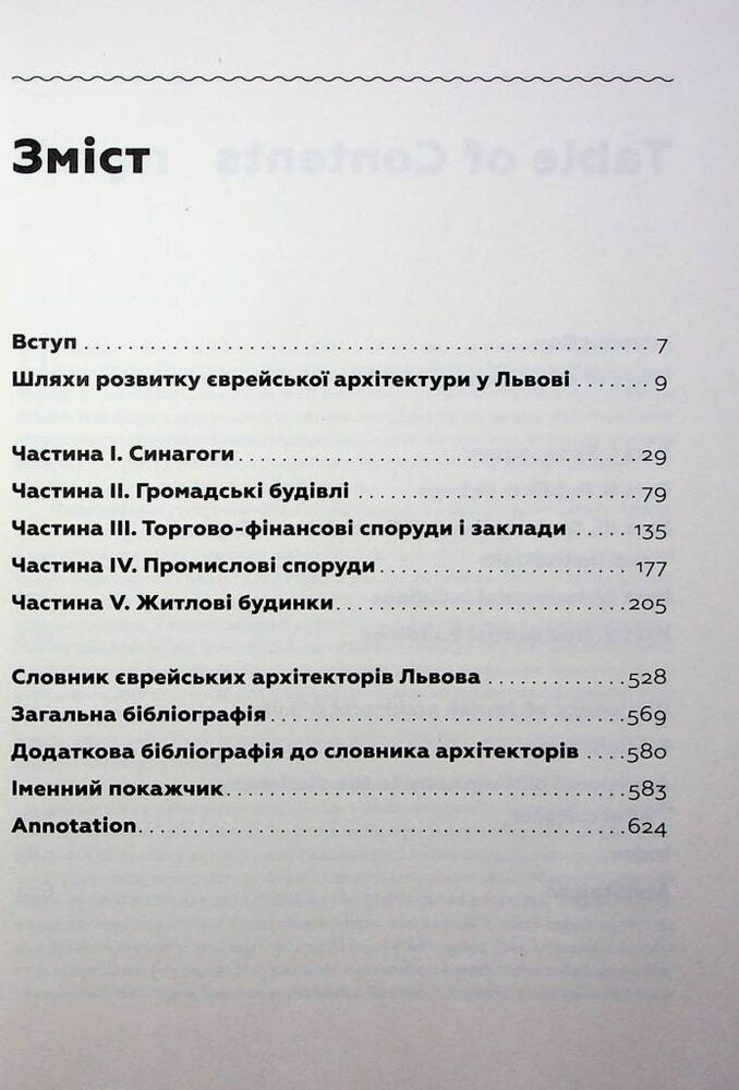 Ця монографія є науковим дослідженням єврейських архітектурних пам’яток Львова від XVI ст. до 1939 р. Вона створена у формі наукового опису й аналізу каталогізованого та систематизованого масиву зафіксованих 440 архітектурних творів. Вибірковість 440 розглянутих об’єктів обґрунтована науковою базою дослідження, в якій використано більшість наявних архівних, літературних і електронних джерел, що є репрезентивною селекцією єврейської архітектурної спадщини. Монографію структуровано за п’ятьма блоками, згідно історичного функціонального призначення споруд, з наскрізною їх нумерацією. До обов’язкових назви, адреси (тогочасної та сучасної), часу побудови, власності, архітектора, історичних стадій будівництва і нинішнього стану залучено стилістично-мистецтвознавчий аналіз, а також свідчення про установи і відомих особистостей, пов’язаних з тією чи іншою спорудою. Наприкінці книги подано біографічний словник львівських єврейських архітекторів та будівничих з докладною бібліографією, іменний покажчик та англомовна анотація.