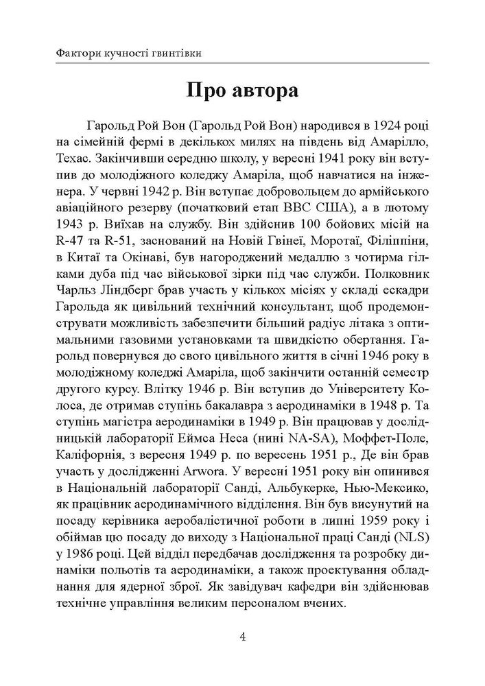 Автор цієї книги Харольд Рой Вогн (Harold Roy Vaughn) присвятив свою кар’єру вивченню траєкторій балістичних ракет та артилерійських снарядів. Він написав цю роботу (Rifl e Accuracy Facts) після того, як ним було встановлено недостатню точність комерційних гвинтівок. Протягом багатьох років він досліджував вплив на кінцеву точність стрілецької зброї від вібрації та жорсткості ствола, рухливості у різьбовому з’єднанні ствола та ресивера, конструктивних особливостей патронника та кульового входу, дисбалансу кул,і неточності у виготовленні сердечника.
