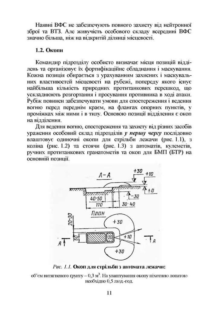 маскування позицій і районів розташування військ (сил). Висвітлено особливості фортифікаційного обладнання та маскування одиночних окопів для ведення вогню зі стрілецької зброї, окопів для бойових машин та опорних пунктів.