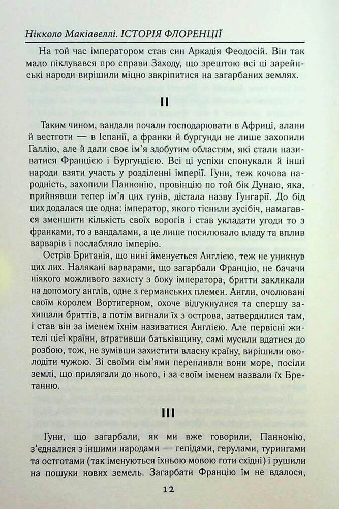 Якщо трактат «Державотворець» вважається найзнаковішою книгою Макіавеллі, то «Історія Флоренції» - його підсумкова, завершальна, остання велика праця. Її небезпідставно вважають не лише пам’яткою пізнього Відродження, а передусім історико-філософським шедевром, який нині, у ХХІ сторіччі, особливо на часі. Зокрема, у сучасному українському політичному контексті. В «Історії Флоренції» її геніальний автор нагадує: «Справедливі лише ті війни, без яких не обійтися, і зброя рятівна, коли без неї немає надії».