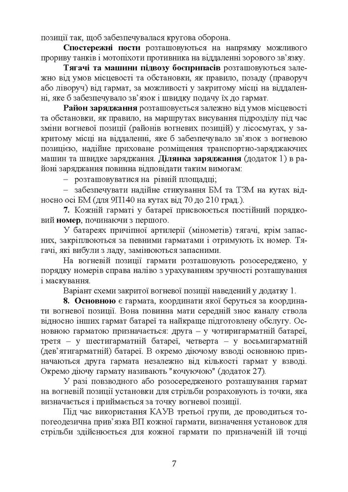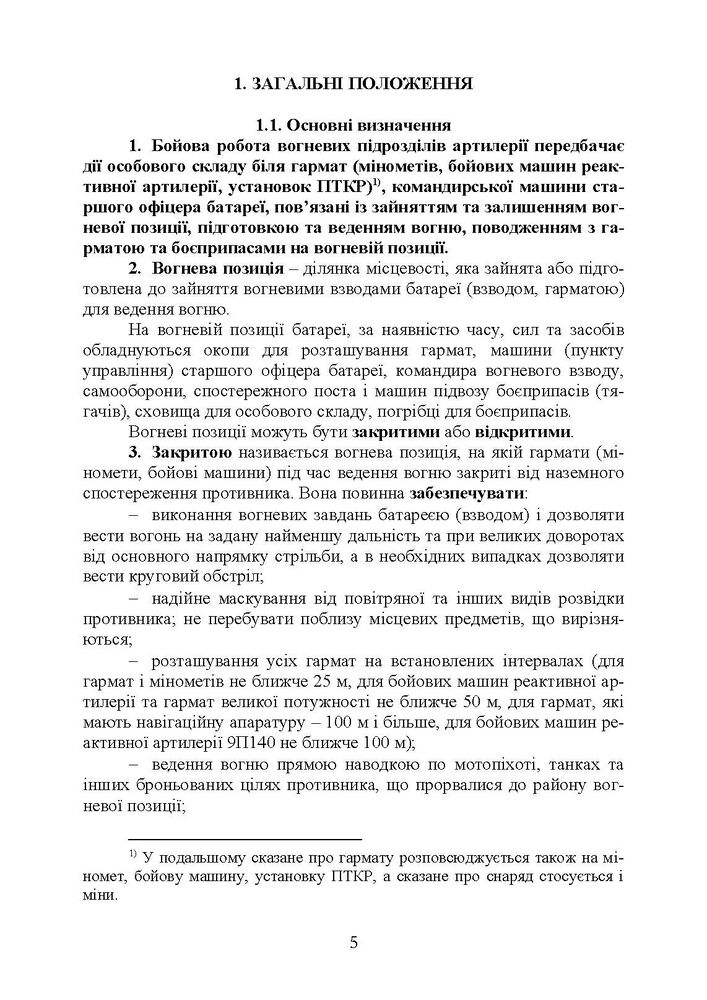 У Керівництві з бойової роботи вогневих підрозділів артилерії викладені дії особового складу, пов’язані з вибором, підготовкою, за-йняттям, правилами подачі і виконання команд під час ведення вогню, та залишенням вогневої позиції, порядок поводження з гарматою (мі-нометом, бойовою машиною, установкою ПТКР), КМУ старшого офі-цера батареї і боєприпасами на вогневій позиції.