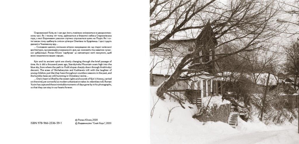 ... Солодким щемом, хмільним вітром минувщини віє од старої київської архітектури, од краєвидів учорашнього дня, що зникають під навалою сучасної урбанізації. Роман Юсим “карбував” ці неповторні миті минулого, щоб вони лишилися в наших серцях.