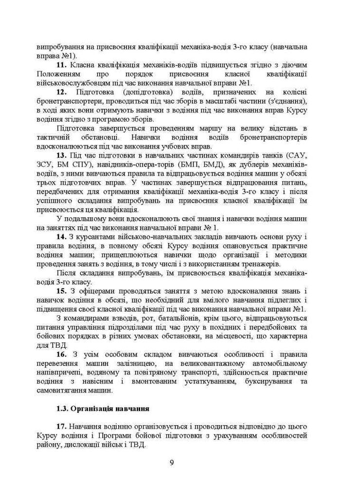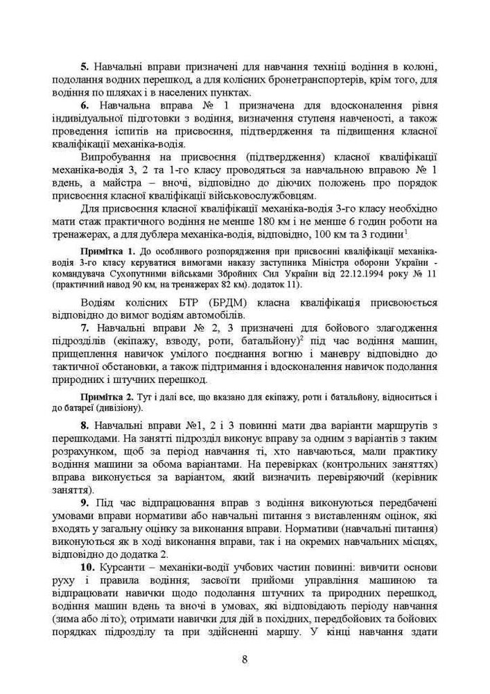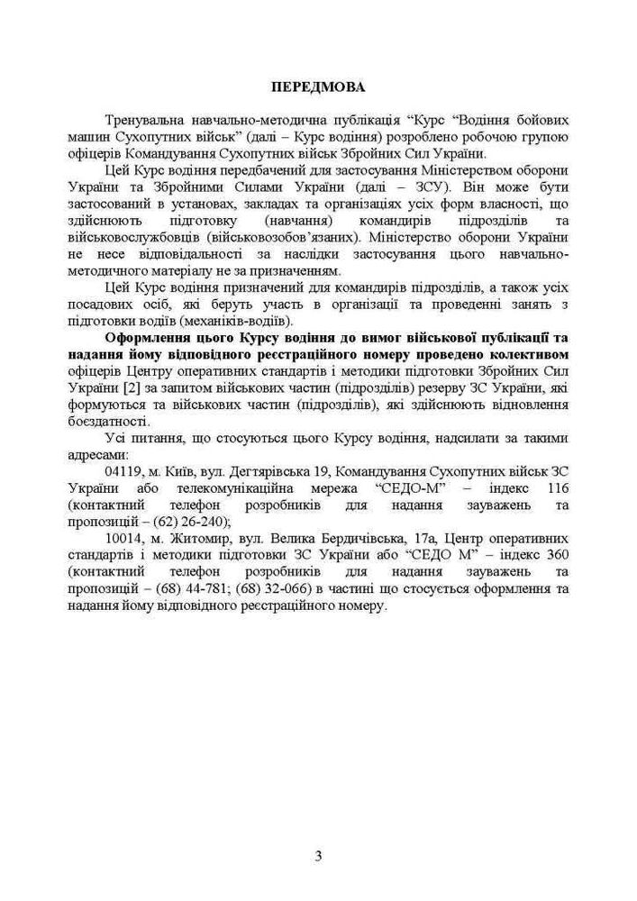 Курс водіння передбачений для застосування Міністерством оборони України та Збройними Силами України. Може бути застосований в установах, закладах та організаціях усіх форм власності, що здійснюють підготовку (навчання) командирів підрозділів та військовослужбовців (військовозобов’язаних). Міністерство оборони України не несе відповідальності за наслідки застосування цього навчально-методичного матеріалу не за призначенням.