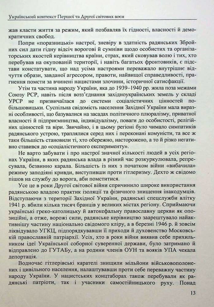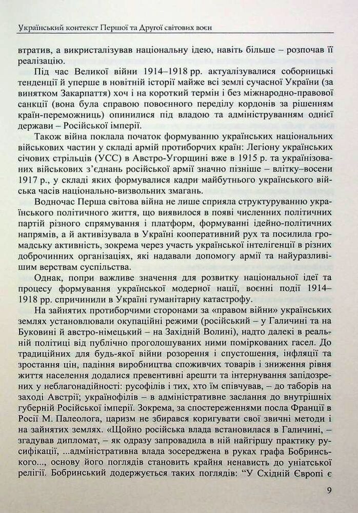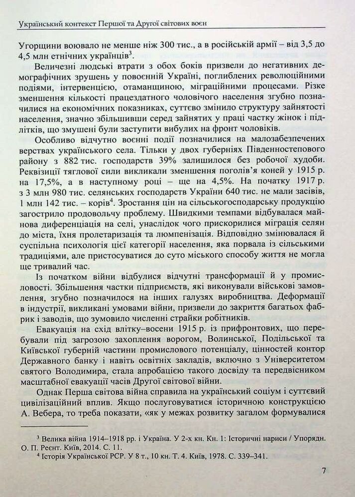 У виданні запропоновано реконструкцію подій Першої та Другої світових воєн у межах дискурсу соціальної антропології. Основну увагу приділено розкриттю низки проблем, пов’язаних із життєвими стратегіями різних категорій та груп українського суспільства, моделями їхньої поведінки та способами виживання в складних умовах війни. З’ясовано визначальні риси глобальних збройних конфліктів, сформовано уявлення про будні пересічних мешканців українських міст і сіл в умовах окупаційних режимів. Проаналізовано соціальні програми й доброчинні заходи, спрямовані на подолання життєвих негараздів уразливих груп населення, визначено роль громадських інституцій і соціальної самоорганізації в цих процесах, висвітлено людські й матеріальні втрати внаслідок війн, шляхи повернення до мирного способу життя, реевакуаційні заходи. Схарактеризовано процес формування пам’яті про Першу та Другу світові війни.