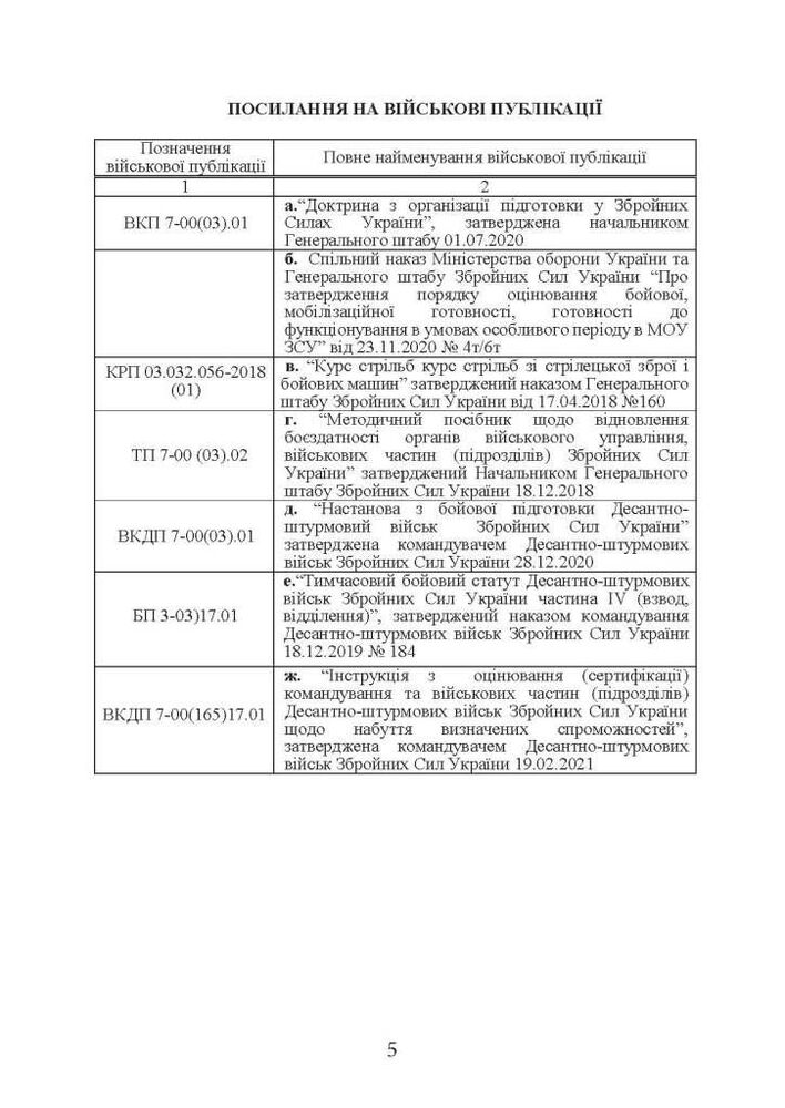 Збройних Сил України. В неї враховані вимоги керівництва Збройних Сил України щодо співробітництва у сфері оборони для досягнення взаємосумісності з країнами-членами НАТО, досвід підготовки та застосування військових частин (підрозділів) Десантно-штурмових військ Збройних Сил України в ході проведення Антитерористичної операції та операції Об’єднаних сил.