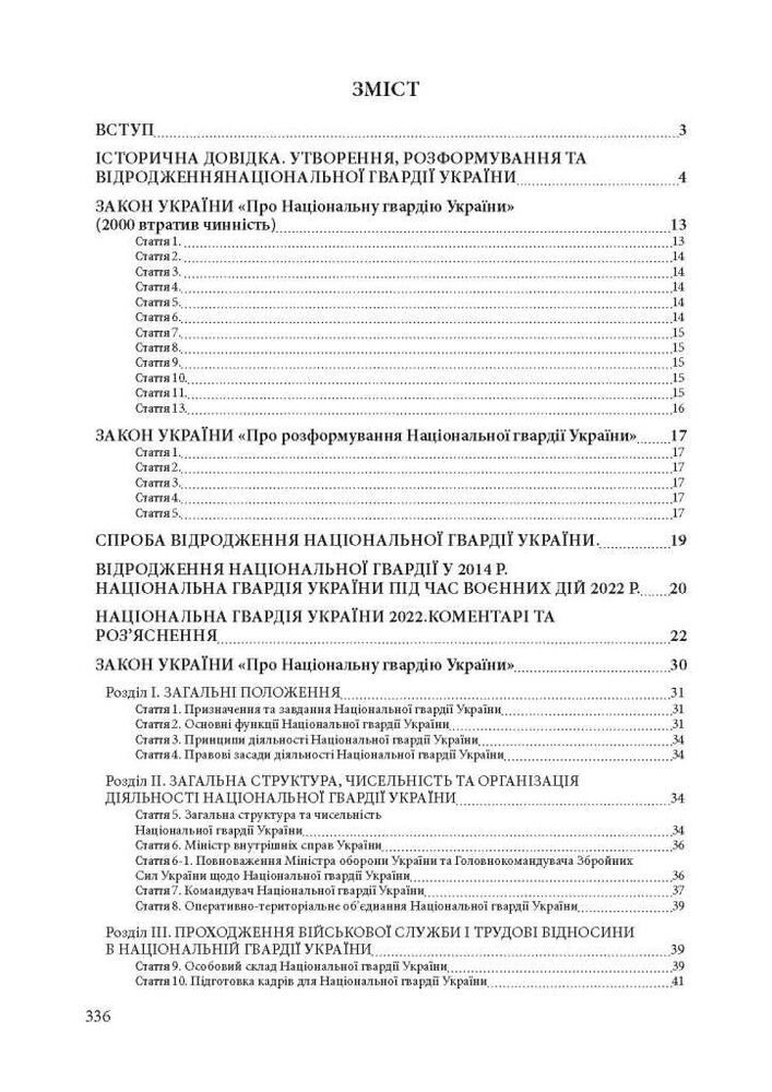 Видання висвітлює історичну довідку щодо утворення, розвиток відродження та сучасний стан Національної гвардії України; правову базу її діяльності і коментарі з роз’ясненнями основних моментів правового регулювання.