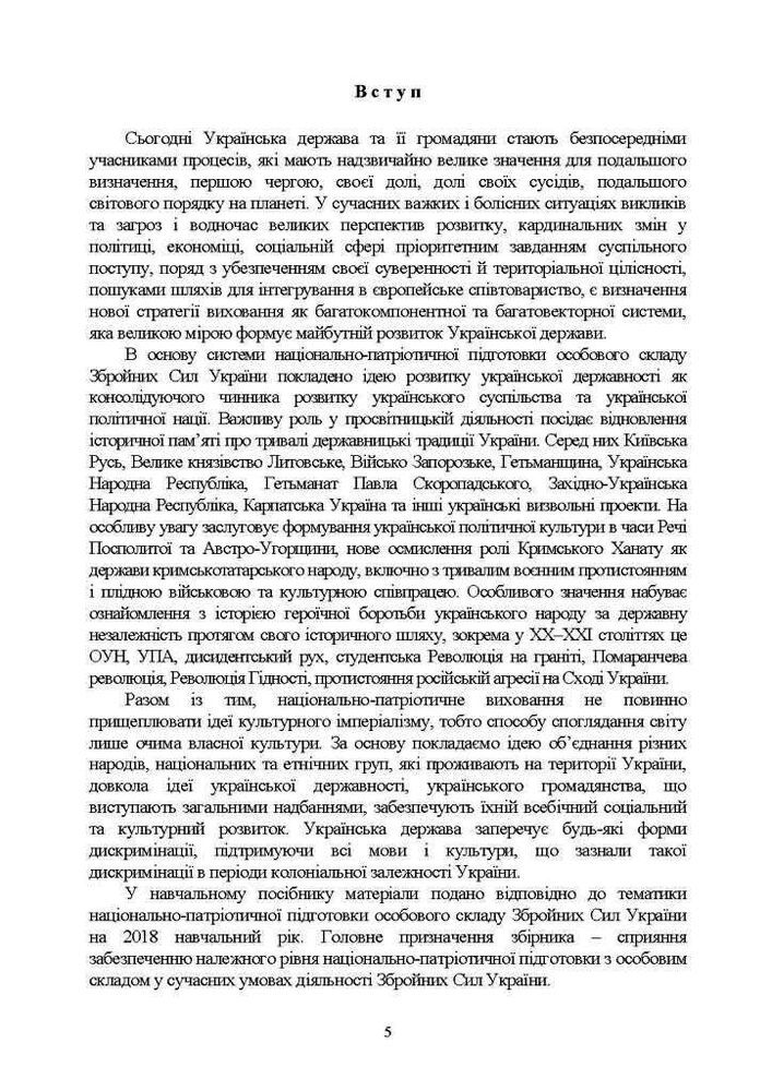 У навчальному посібнику матеріали подано відповідно до тематики національно-патріотичної підготовки особового складу Збройних Сил України.