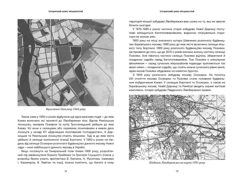 Книга про Південне Лівобережжя охоплює простір сучасного Дарницького району, розташованого на південь від залізниці. У роботі над книгою було використано історичні карти та космічні знімки, а також рідкісні архівні фотографії, багато з яких друкуються вперше. Особлива увага приділена процесу формування сучасної забудови, проаналізовані проєкти житлових районів та генеральні плани. У масовій забудові ідентифікована більшість типових проєктів житлових будинків та шкіл. Книга буде цікавою архітекторам, історикам, києвознавцям та києвофілам, лівобережним та правобережним мешканцям столиці, а також усім, хто цікавиться темою.