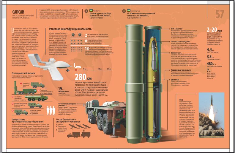Также в книге представлены ключевые оборонно-промышленные проекты Украины в сегменте высокоточного оружия, включая создание многофункционального оперативно-тактического комплекса «Сапсан», модернизацию береговых противокорабельных комплексов, развитие противотанковых управляемых ракет и систем. Представлены и новинки отечественного бронетанкостроения – танк «Оплот», модернизированные БМП, бронетранспортер БТР-4 в версии БТР-4Е и его новейшая модификация БТР-4МВ, новые бронеавтомобили с колесной формулой 4х4 и автомобили повышенной проходимости.