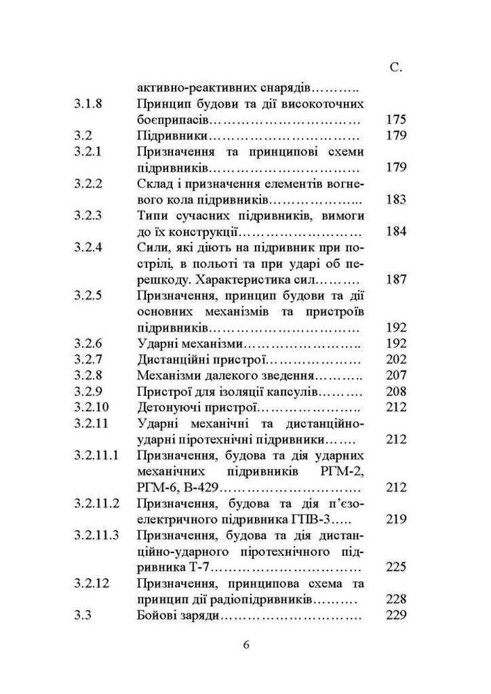 Окремі розділи підручника присвячені будові боєприпасів, а саме: снарядів, підривників, бойових зарядів та їх експлуатації.