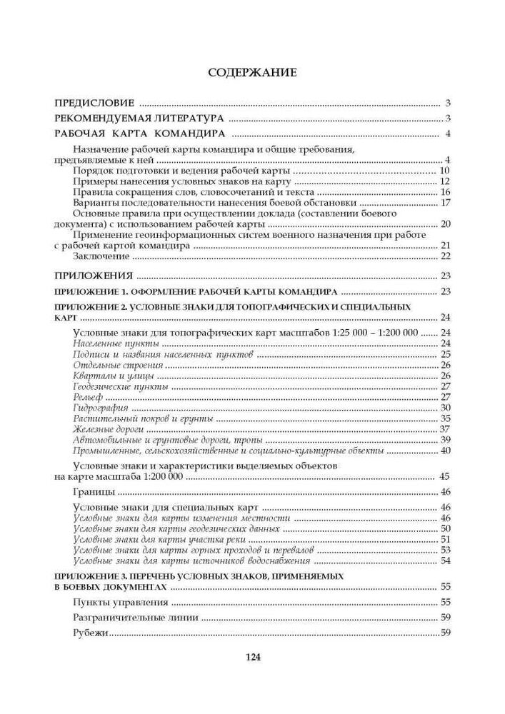 Викладено основні правила оформлення та ведення робочої карти командира з використанням геоінформаційних технологій. Наведено перелік умовних знаків для топографічних та спеціальних карток.