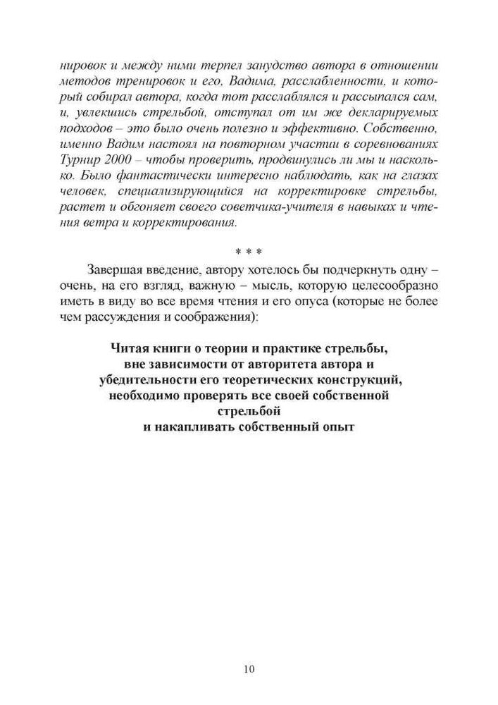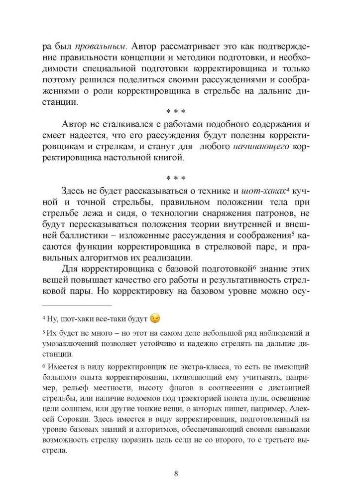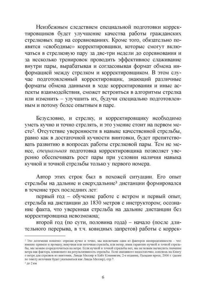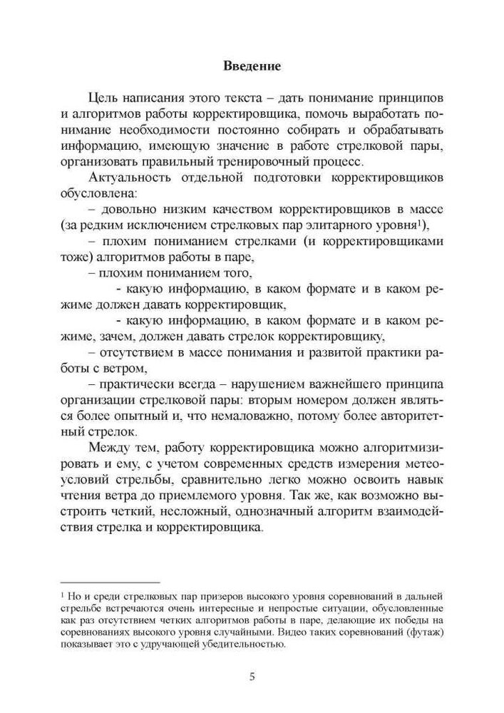 Методичний посібник написано практикуючим стрільцем, призером змагань зі стрільби до 1830 метрів (2000 ярдів). Буде корисним стрільцям на далекі та наддалекі дистанції та коригувальникам. Містить опис алгоритмів стрільби, алгоритмів оцінювання вітру, протоколів обміну інформацією між стрільцем і коригувальником. Заощадить грошей не на одне тренування за рахунок оптимізації тренувального процесу і використання алгоритмів, заснованих на досвіді багатьох стрільців.