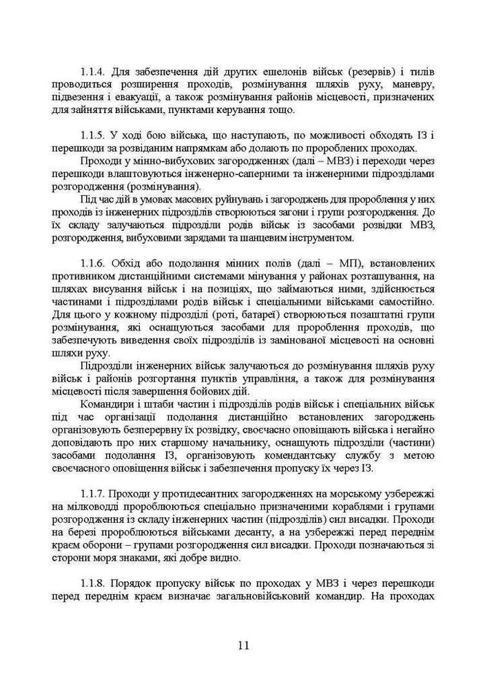 Настанова з подолання (маркування) інженерних загороджень визначає порядок подолання інженерних загороджень, пророблення проходів у них, а також організації робіт з розмінування та ліквідації загороджень з врахуванням організації та виконання цих завдань в збройних силах держав — членів Організації Північноатлантичного договору (далі — НАТО).