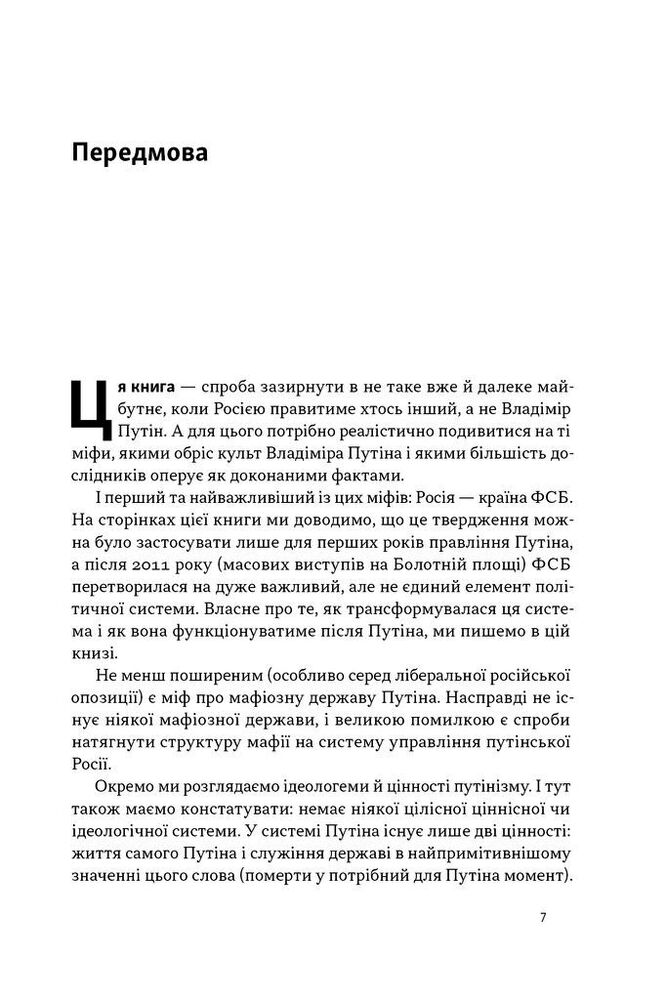 Автори цієї книжки «анатомічно» розкладають путінський режим на складові частини та пояснюють, чому Путін більше не довіряє ФСБ і не спирається на силовиків, роблячи вибір на користь «політичної системи».