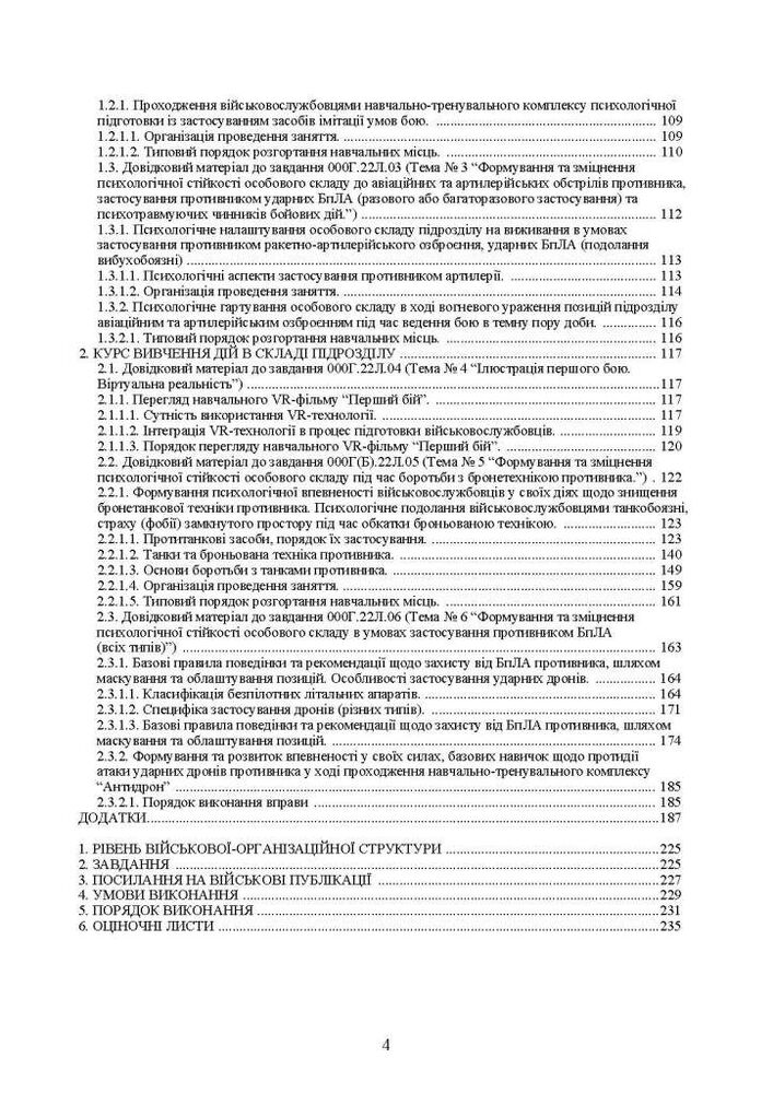 Розглянуо формування та зміцнення психологічної стійкості особового складу до авіаційних та артилерійських обстрілів противника, застосування противником ударних БпЛА (разового або багаторазового застосування) та психотравмуючих чинників бойових дій; формування та зміцнення психологічної стійкості особового складу під час боротьби з бронетехнікою противника;