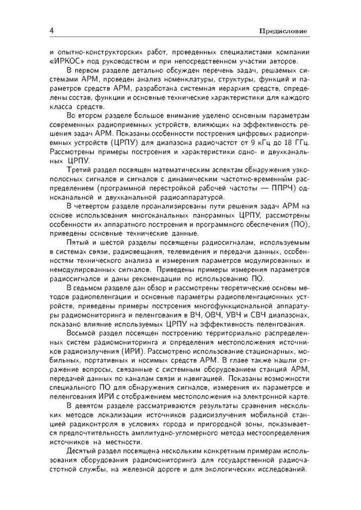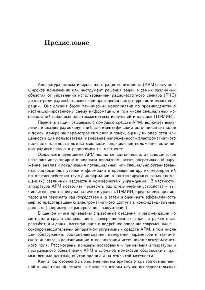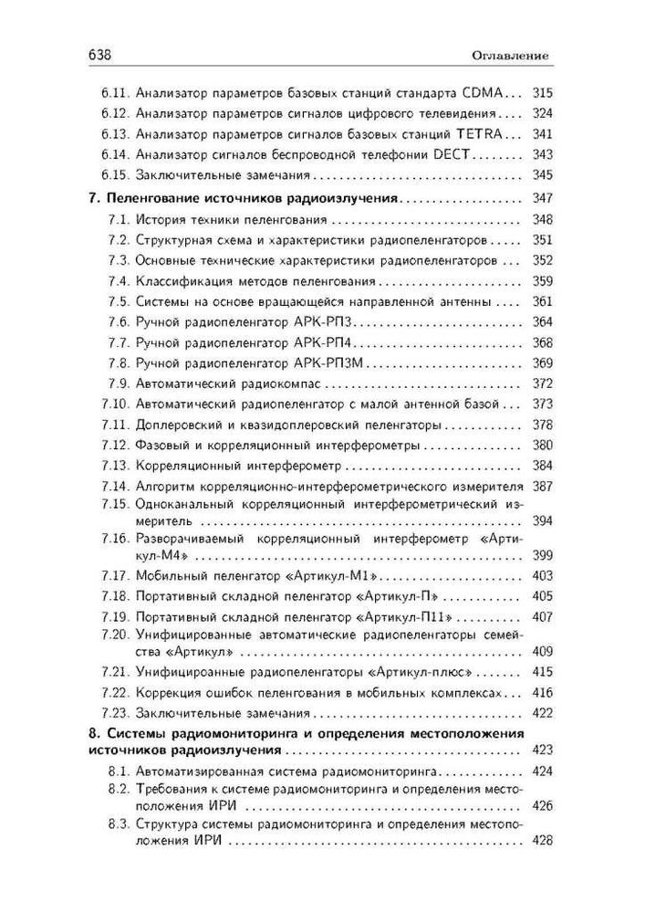 Викладені теоретичні та практичні питання, методи математики та програмне забезпечення радіотехнічних систем і пристроїв для виявлення та технічного аналізу радіовилучень, вимірювання сигналів, параметрів напруженості електромагнітного поля, пеленговання та визначення положення джерел радіосигналів і радіопомех, виявлення утечок інформації та проведення спеціальних досліджень. Детально розглянуто широкі особливості побудови сучасних одноканальних і багатоканальних цифрових панорамних радіоприймальних пристроїв і пеленгаторів, аналізаторів сигналів GSM, CDMA, DVB -T/H, TETRA і DECT.
